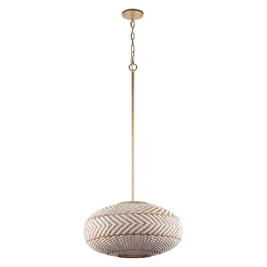 The Zanzibar Collection is an embodiment of laid-back luxe and thoughtful simplicity. By marrying the natural textures of natural rattan with white and/or black lanyard, the fixture introduces a striking color palette with a soft gold finish that instantly brings comfort and style to a living space Handcrafted with precision, the intricate weave introduces texture and depth to your décor. Whether suspended over a breakfast nook or in pairs above a kitchen island, the Zanzibar exudes an earthy, elegant charm that brings an artisanal touch to your decor.