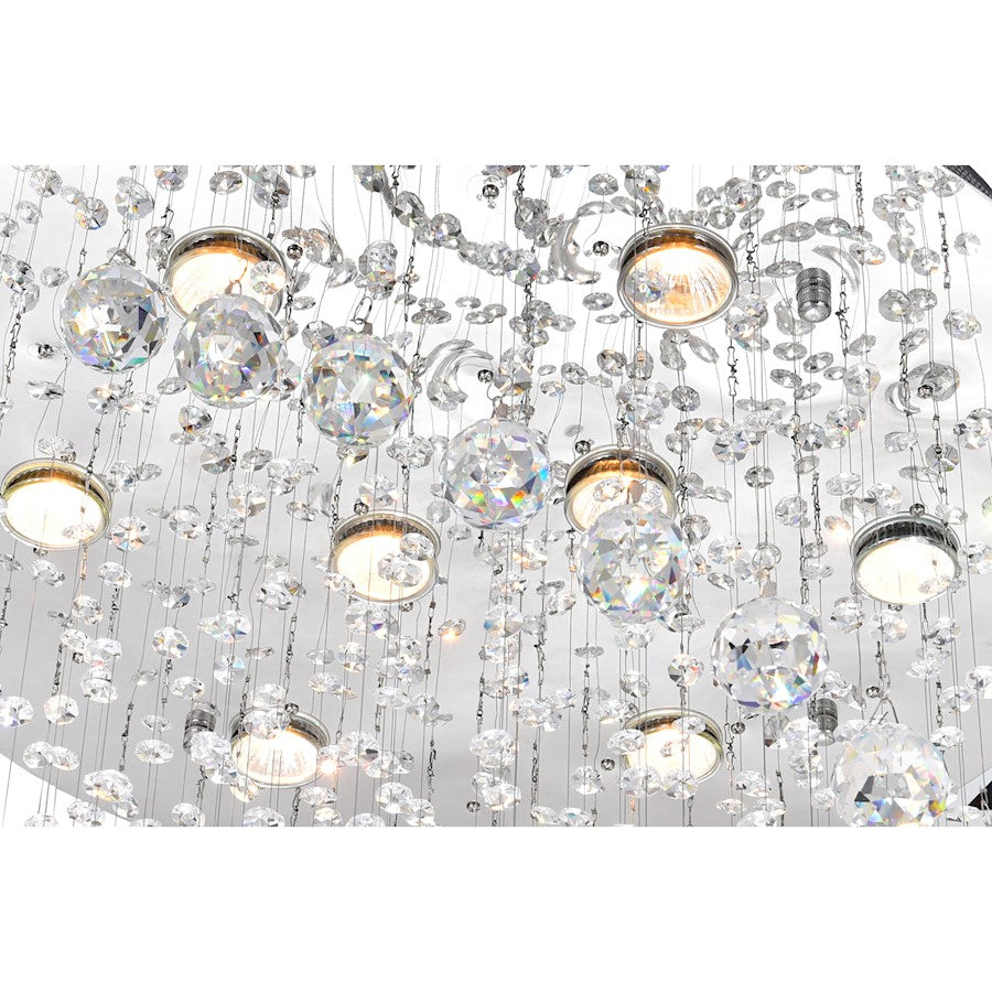 Add an air of elegance to your contemporary home through this Spiral 8 Light Flush Mount Chandelier. Faceted crystal balls that look like spiraling droplets of water are the highlight of this light fixture. A curtain of delicate strands of tiny clear crystals complete the exquisite luster of this piece. Perfect in the dining room, living room, stairwell, or foyer with high ceilings, this glam light fixture won't disappoint.