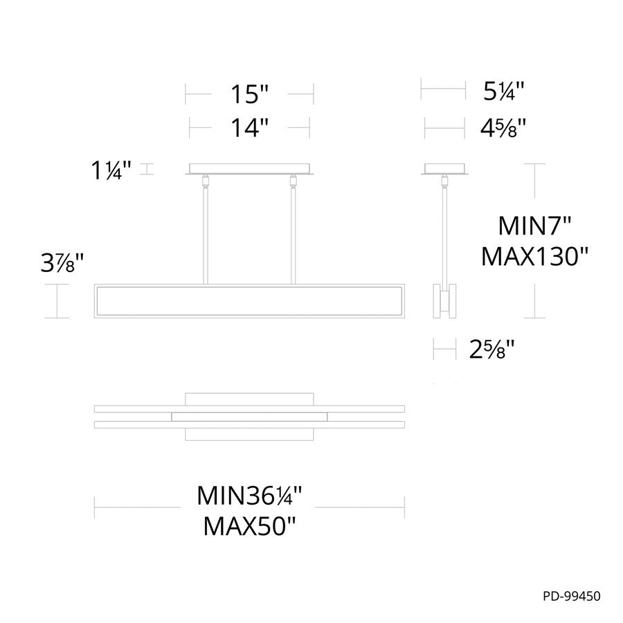 Rectangular forms radiate LED illumination both upward and downward. Adjust the length effortlessly by sliding the sections apart to fit your table or space. Its seamless design exudes sharp, modern style.