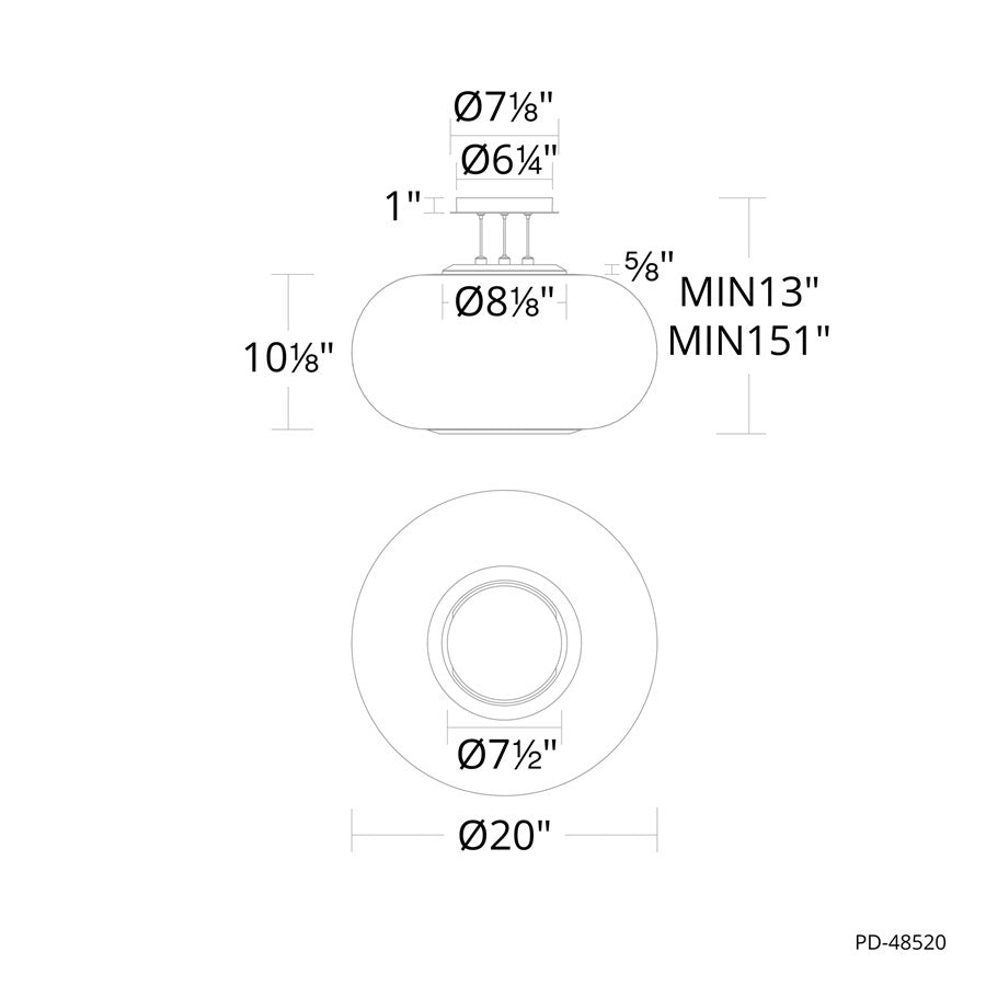 dweLED Doma 1 Light 20" Pendant/2700K, Black/Opaline/Opal