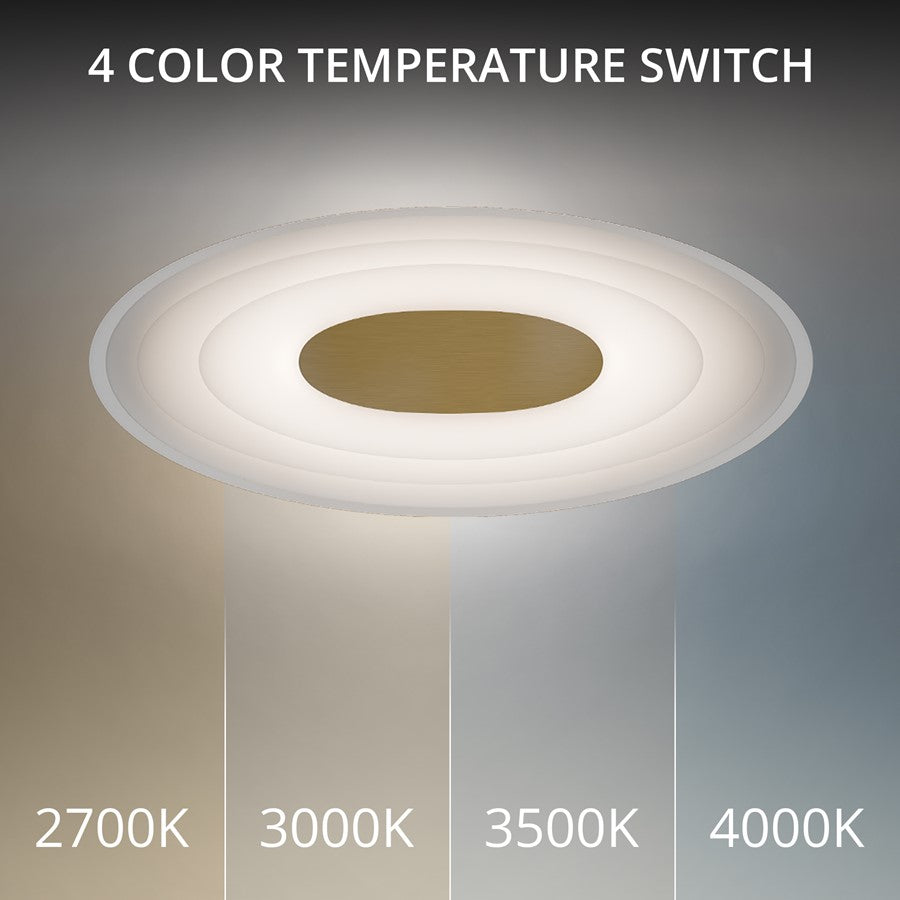 A smooth, layered design of concentric rings frames a crisp central circle. Its low-profile construction minimizes bright horizontal glare while creating a gentle wall wash around the inner plate.