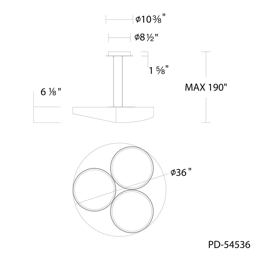 Overall Dimensions: 6.13"(H) x 36"(Dia)