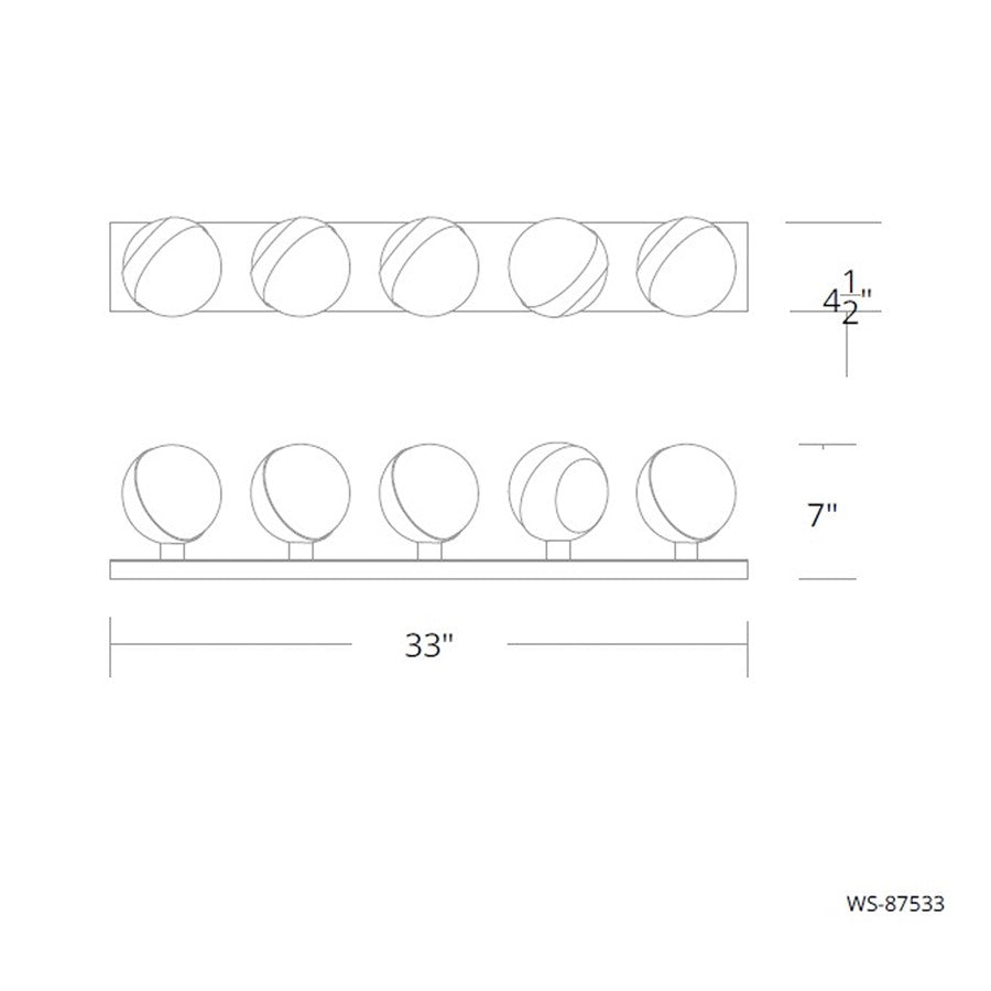 dweLED Tripoli 5Lt 33" Bath Vanity/Wall/3500K, Nickel/Opal