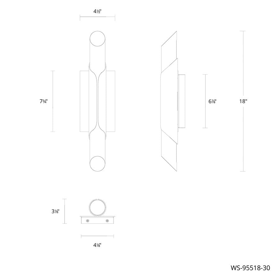 dweLED Wrappe 1 Light 18" Wall Sconce/3500K, Black/Clear/Etched