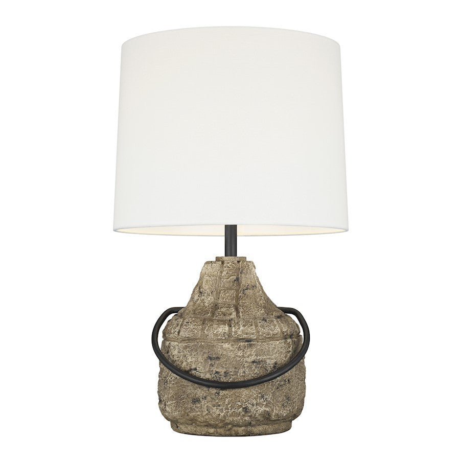 The Augie Table Lamp draws inspiration from a vintage hand-chiseled horse hitching stone. This large-scale table lamp has a resin base in our Stone finish, with Aged Iron hardware and a crisp, drum-shaped White Linen shade.