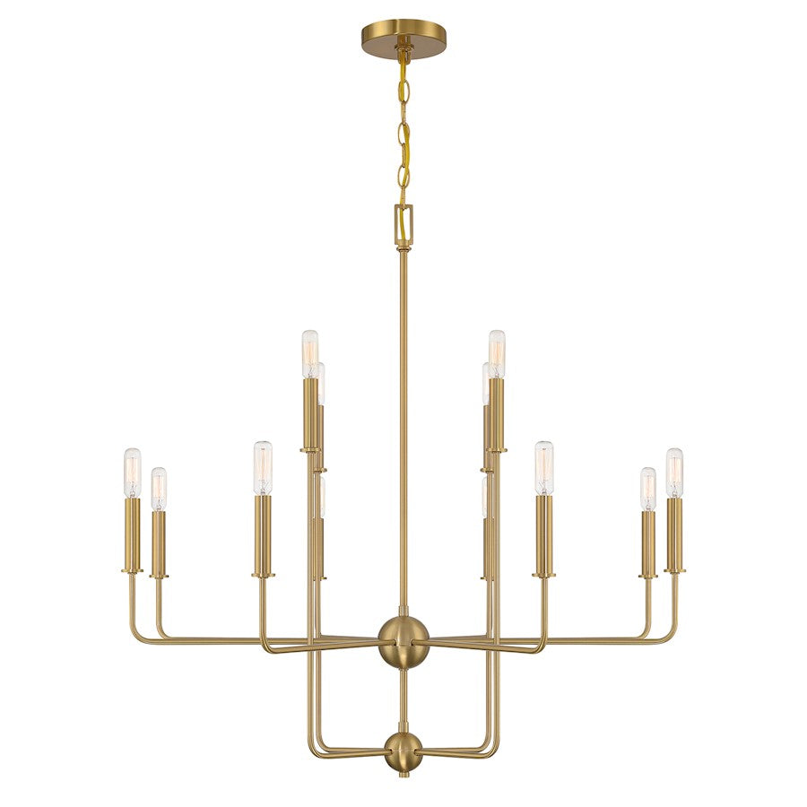 Elegant in its simplicity, the Savoy House Avondale 12-light chandelier brings streamlined style to any space. Finished in Warm Brass. Avondale is 33.75" in height and 34" in width. It uses twelve candelabra size bulbs of up to 60 watts per bulb. Bulbs not included.