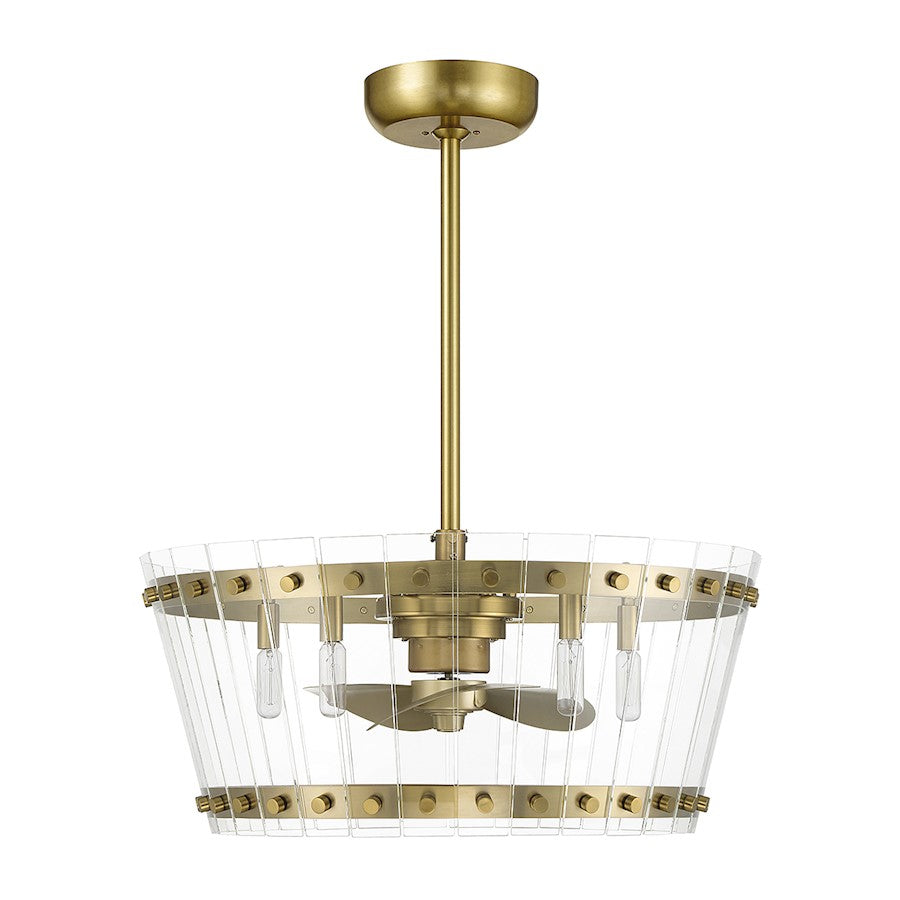 This Savoy House Ventari 5-Light Fan D'Lier is beautifully elegant in its simplicity. Its structure is adorned with slats of clear glass, finished in matte black or warm brass and appears to be suspended in midair. Ventari is 30" in height and 24" in width. Five 6-watt candelabra size LED bulbs are included. Fan D'Liers are a Savoy House exclusive that combines the best of ceiling fans with the best of chandeliers in one fabulously fashionable fixture. These custom designs are inspired by high-end designer styles and take top trends to a whole new level.