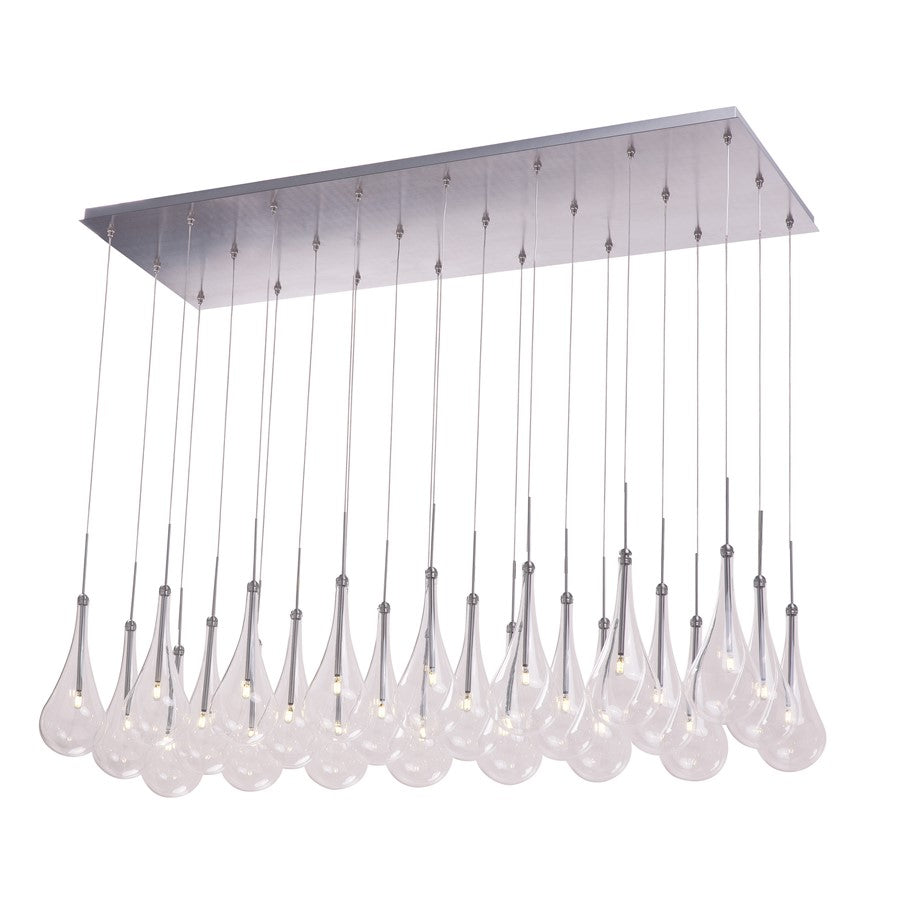 The new Larmes features an extended profile Clear glass shade that screws on to a Satin Nickel mount. Long life G4 LED give considerable light and are dimmable.
