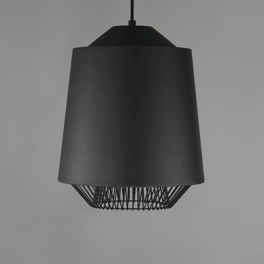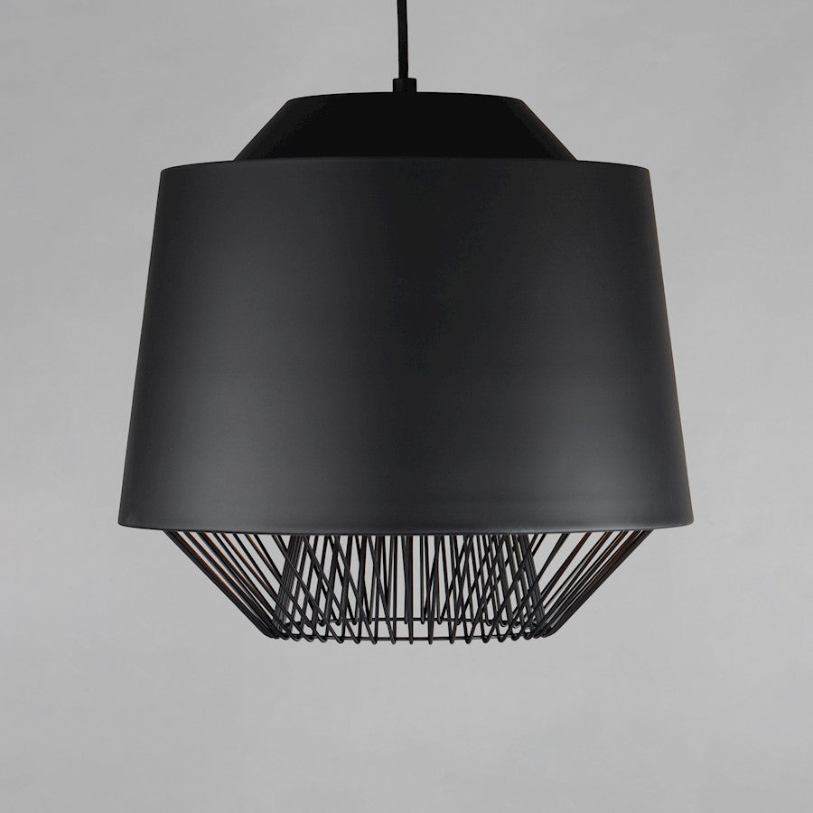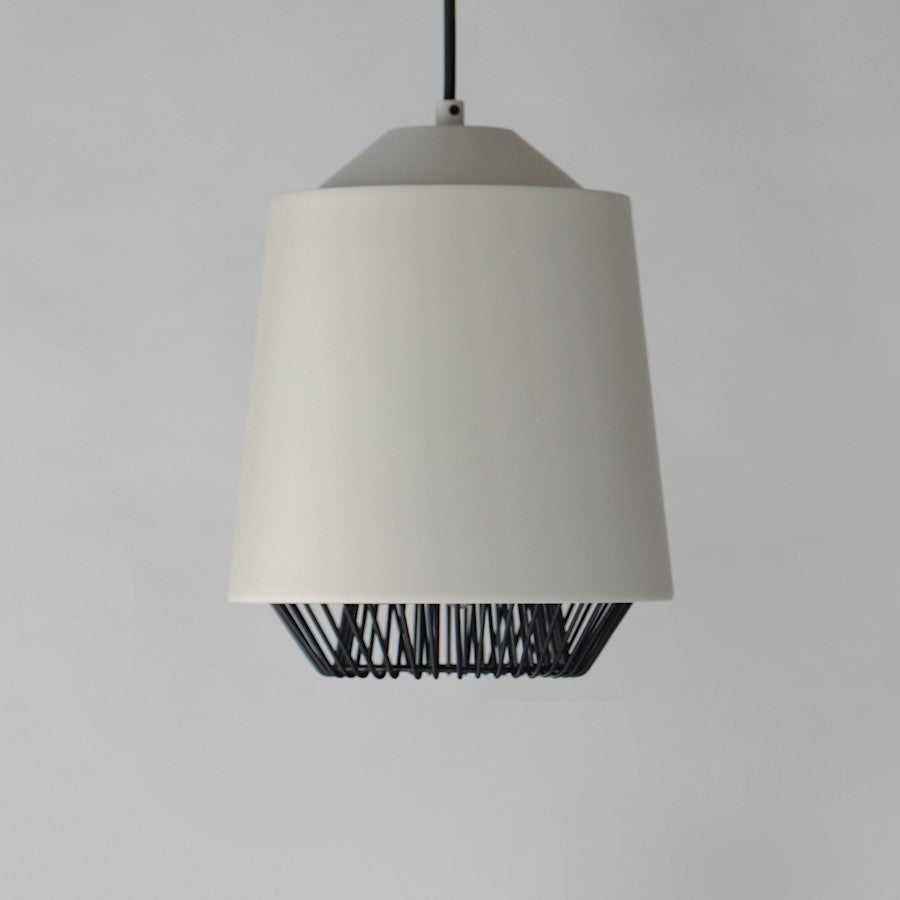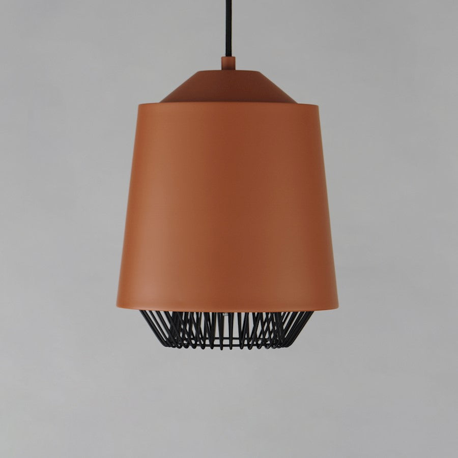 Both modern and industrial, the angular lines of these aluminum spun shades refresh a classic concept in a clean, contemporary execution. The shades - available in Brick, Black, and a Pale Gray powder coated finish, feature multiple joints and peaks in their form and at their bottom intentionally return inward. The shape at the bottom is not only attractive, but a cleverly conceived method to support a wire network of Black steel that forms a cage without visible hardware. Illuminated from within the spun metal shades in 3 varying sizes and shapes, the LED lamp provided shines light below and disperses through the wireway creating a beautiful radiating light pattern.