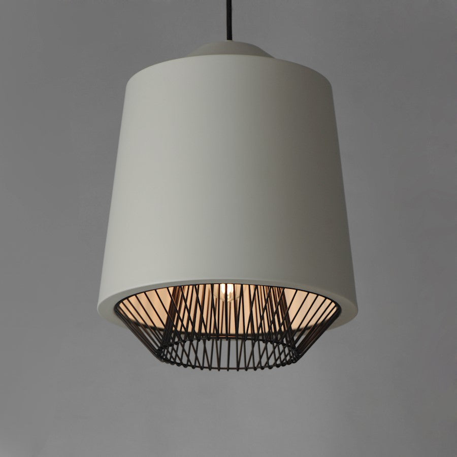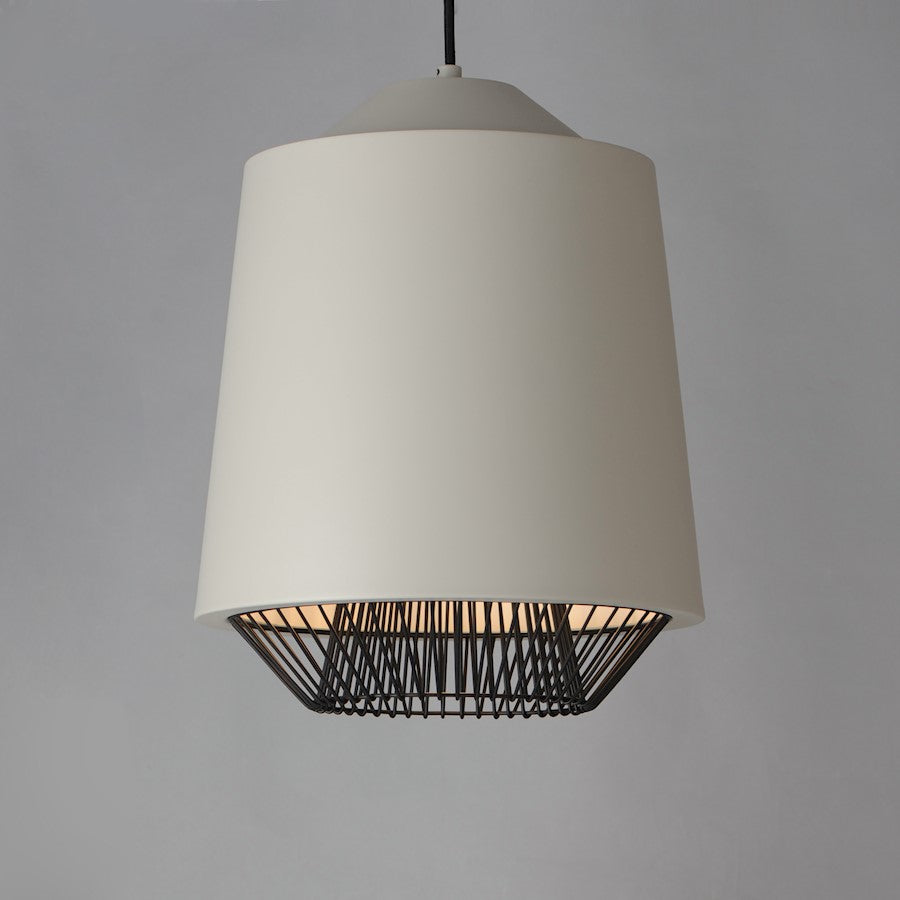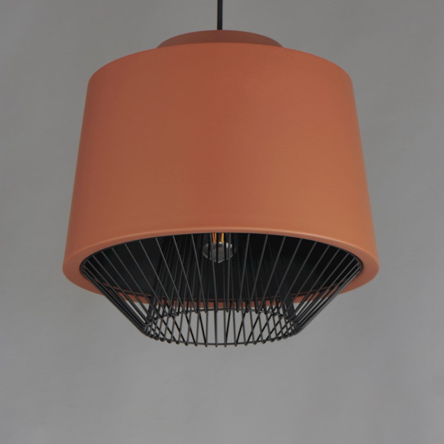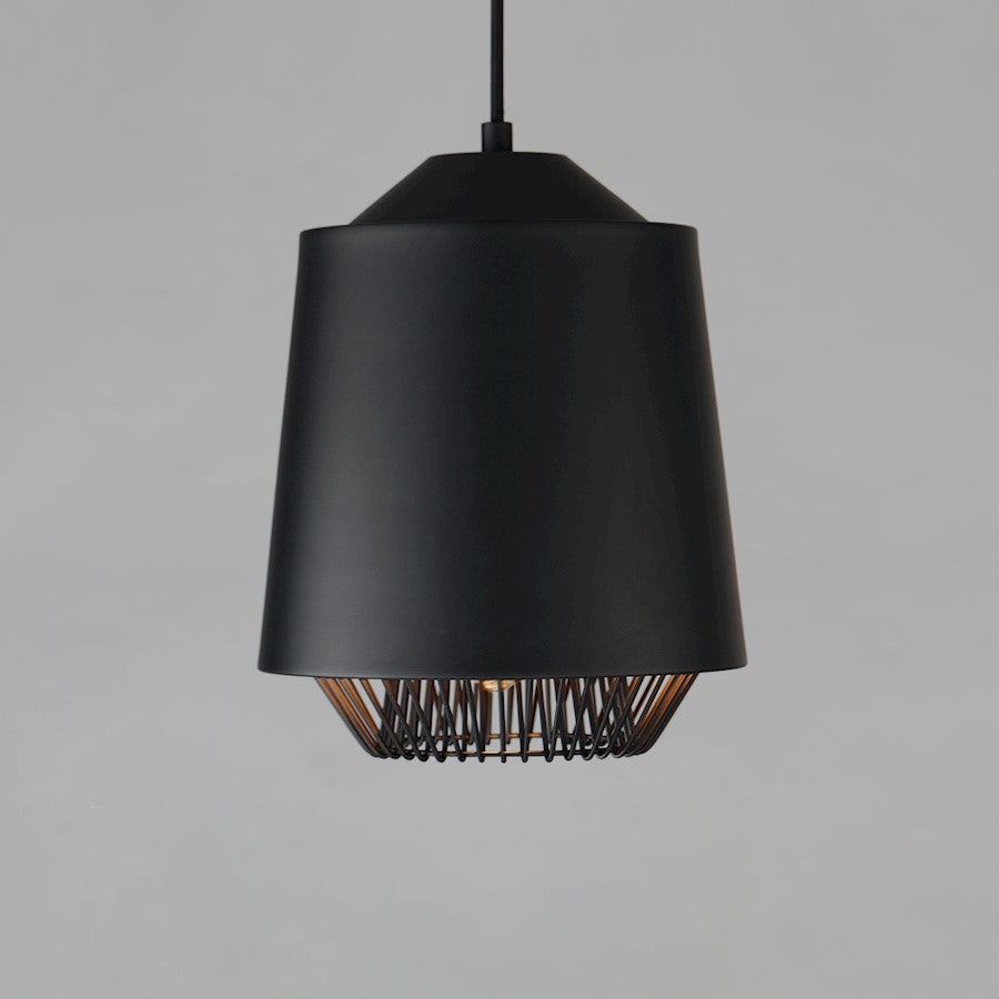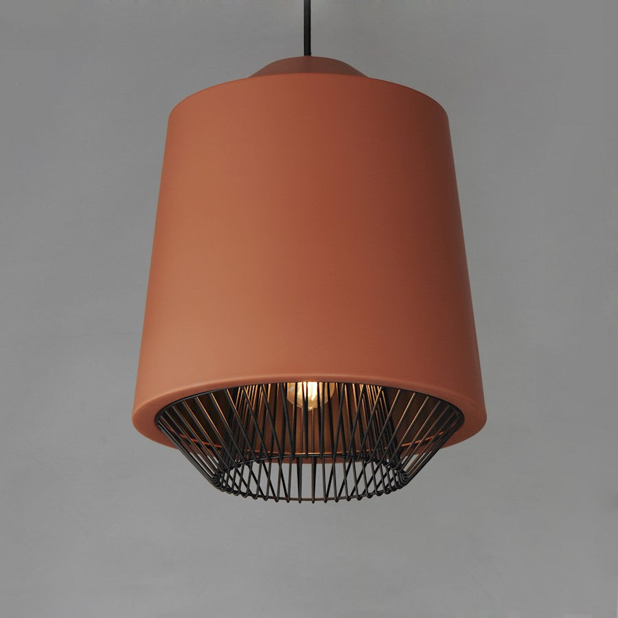 Both modern and industrial, the angular lines of these aluminum spun shades refresh a classic concept in a clean, contemporary execution. The shades - available in Brick, Black, and a Pale Gray powder coated finish, feature multiple joints and peaks in their form and at their bottom intentionally return inward. The shape at the bottom is not only attractive, but a cleverly conceived method to support a wire network of Black steel that forms a cage without visible hardware. Illuminated from within the spun metal shades in 3 varying sizes and shapes, the LED lamp provided shines light below and disperses through the wireway creating a beautiful radiating light pattern.