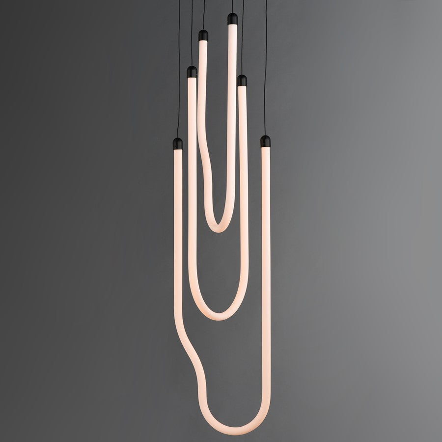Sweeping matte white acrylic tubes encase an omnidirectional LED light source, arranged in abstract configurations inspired by solar flares. Minimal in composition yet dramatic in form, the Soleil collection offers a striking lighting solution. Available in a range of sizes, including fixed flush mount and field-adjustable pendant configurations, Soleil is offered in Polished Chrome, Matte Black, and Natural Aged Brass, making it a perfect complement to a variety of interior color schemes.
