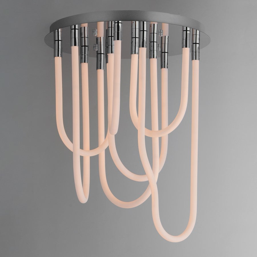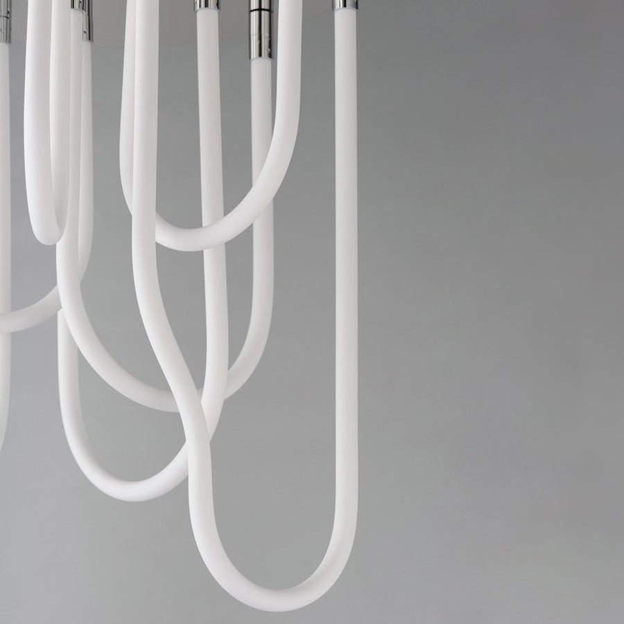 Sweeping matte white acrylic tubes encase an omnidirectional LED light source, arranged in abstract configurations inspired by solar flares. Minimal in composition yet dramatic in form, the Soleil collection offers a striking lighting solution. Available in a range of sizes, including fixed flush mount and field-adjustable pendant configurations, Soleil is offered in Polished Chrome, Matte Black, and Natural Aged Brass, making it a perfect complement to a variety of interior color schemes.