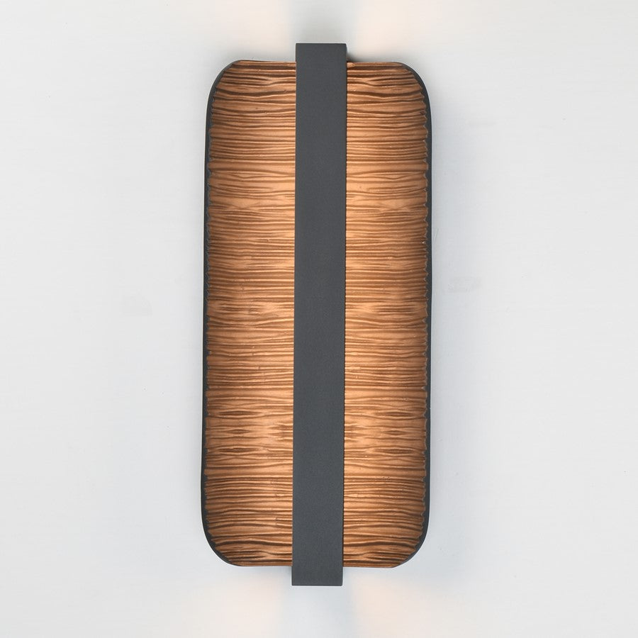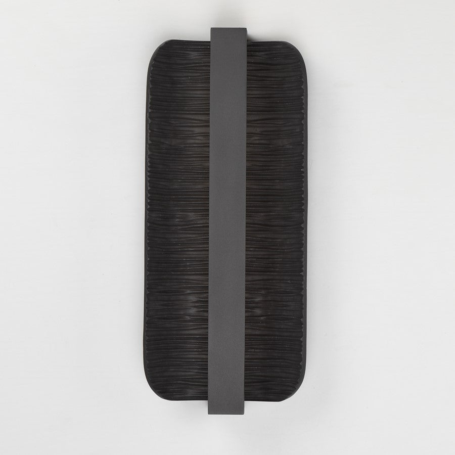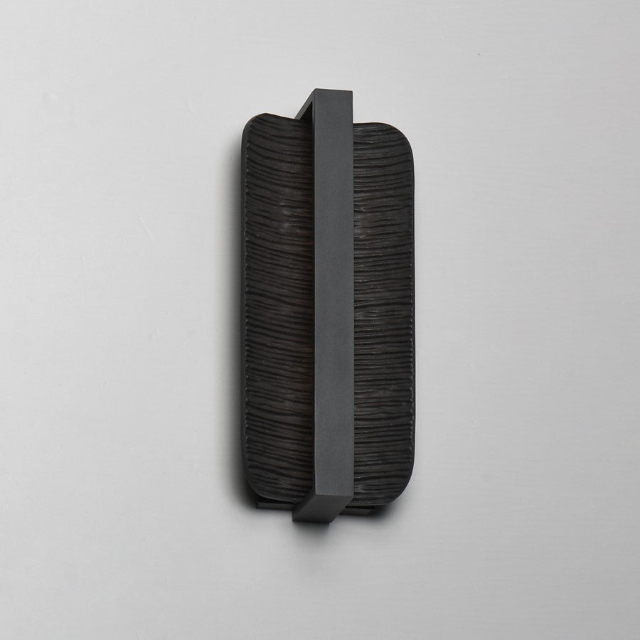 A line of indirect LED lighting shines back on a rough-hewn cast aluminum plate with an erosion pattern that curves slightly at its ends. The neutral 3000K color temperature casts warm lighting that creates shadows and depth on the fixtures surface. An earthly organic composition available in Matte Black and Architectural Bronze, these sconces will elevate a space whether it be used in a wet exterior application or interior. An extension of less than 4" makes these sconces ADA compliant.