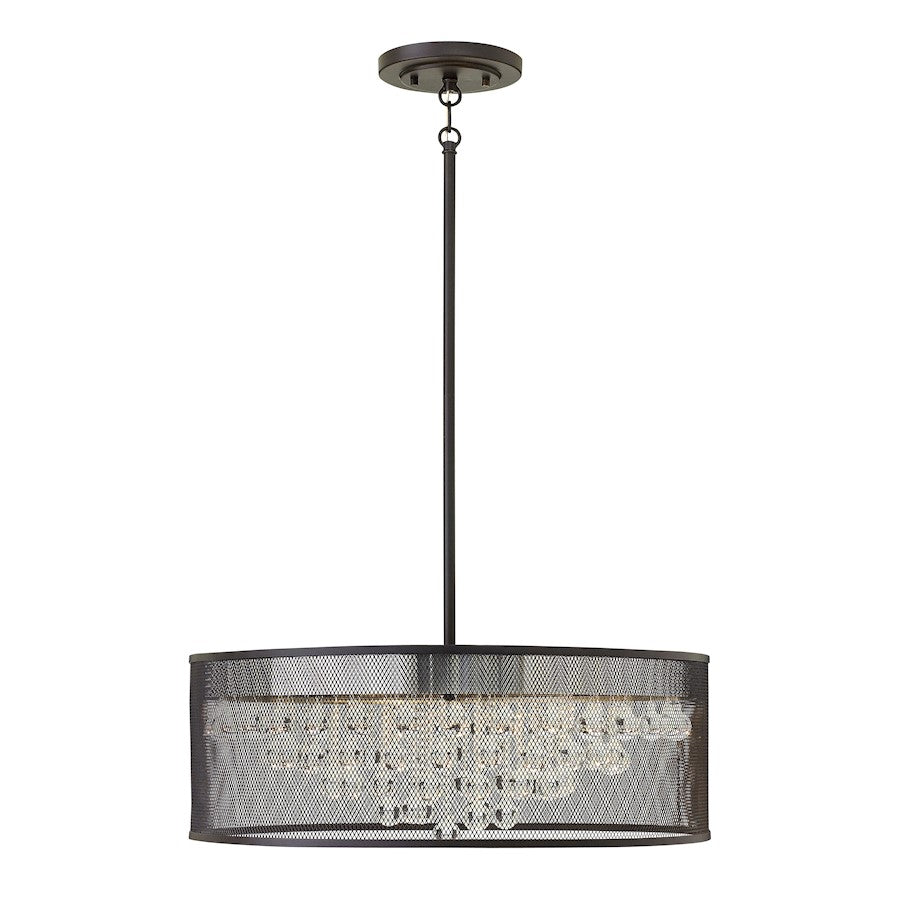 Fiona features a sleek industrial Black mesh outer drum shade encircling tiered glass spheres for the ultimate pairing of industrial-chic design details.