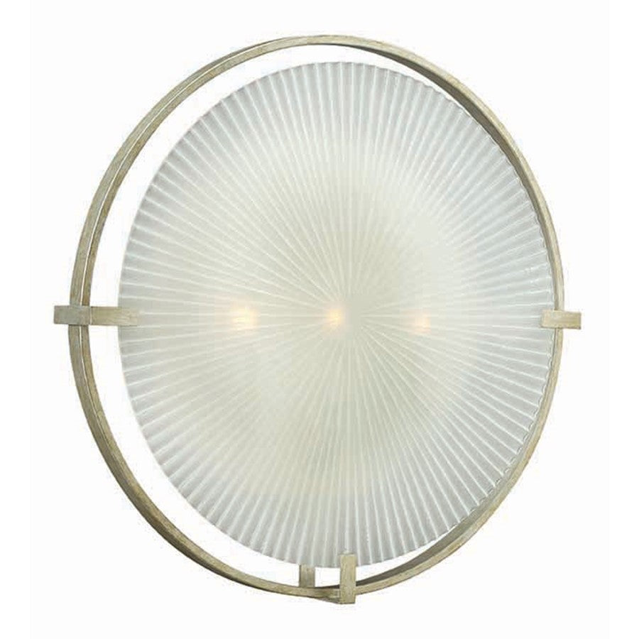 The Helios collection is a sophisticated transitional design centered on a stunning sunburst of etched Piastra glass. The slim silhouette gently reinforces its circular theme with a round frame structure in elegant Silver Leaf.
