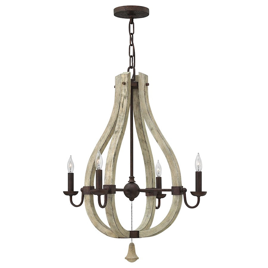 Middlefields rustic-chic design captures a historical feel with its solid distressed wood reminiscent of weathered ash, steel construction and iron rust finish. A pear-shaped wood finial adds an additional elegant detail.