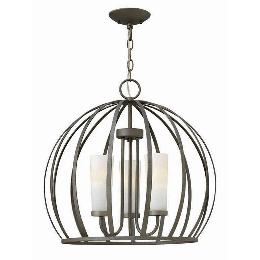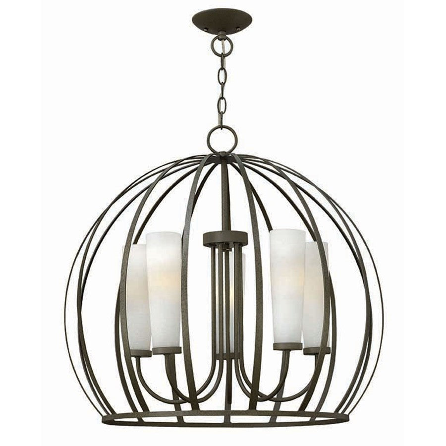 Renatas striking modern design features an outer sphere-shaped cage created from solid metal that has been flattened and tapered. The chandelier cage encompasses 3 or 5 etched opal linen glass shades while the caged pendant styles surround a unique rounded globe of etched opal linen glass.