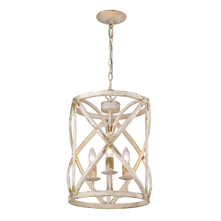 The Alcott Collection features cozy, barrel-style lanterns. This three-light pendant is finished in a multi-layered antique ivory and features a rusty, gold patina that takes you back in time. The transitional style of this pendant will fit perfectly with your farmhouse design and it is available in two finishes. Pendants create stylish focal points and this three-light pendant is comfortably sized for a cozy dining room, nook, or entry.