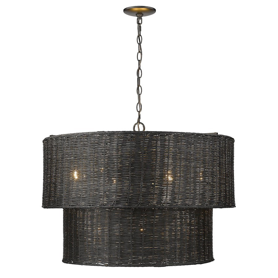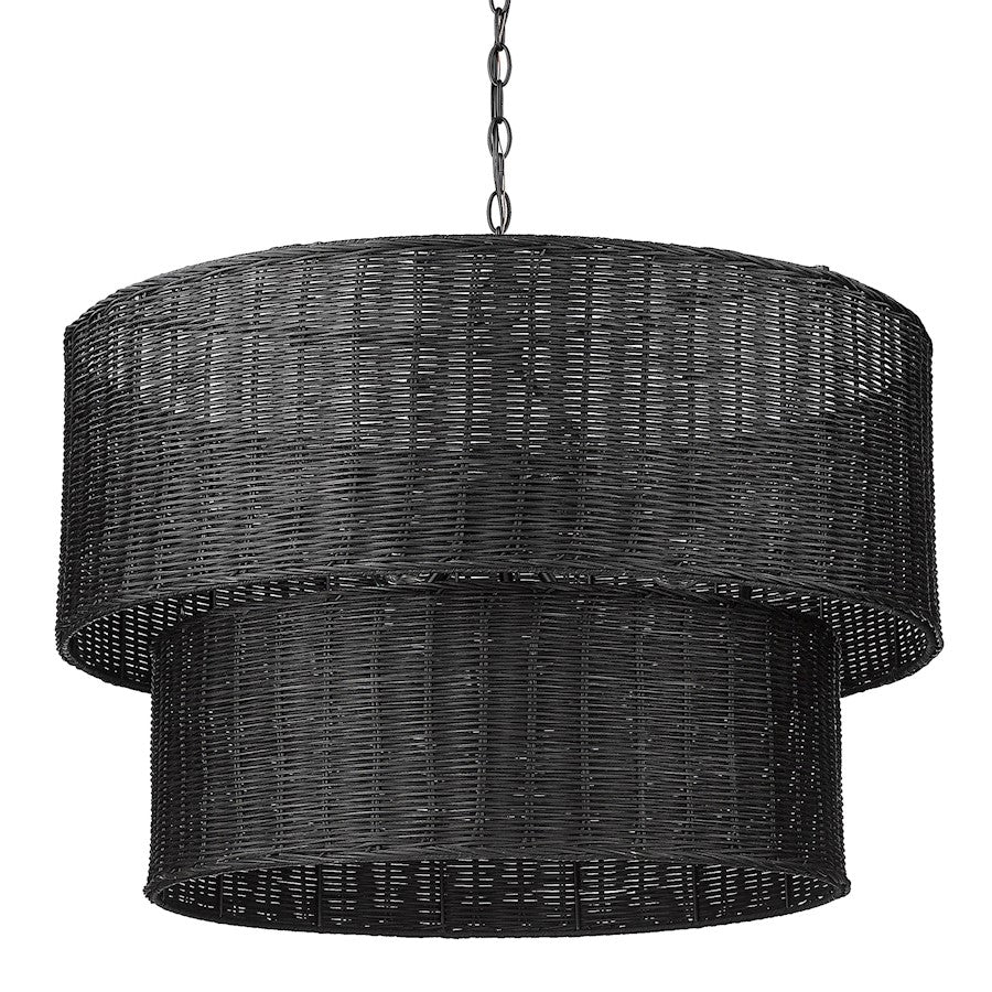 Casual elegance is re-defined in the transitional Erma Collection. This Bohemian-chic series will give your home new life. Offered in multiple silhouettes, including some two-tier configurations, these textured, airy fixtures are stunning. Carefully crafted of black wicker over a steel frame, the lights are durable. The monochromatic look is complete with a highly adaptable Matte Black finish. Bright light shines from numerous medium-based sockets. Create a warm ambiance in any indoor space with these peek-a-boo woven shades.