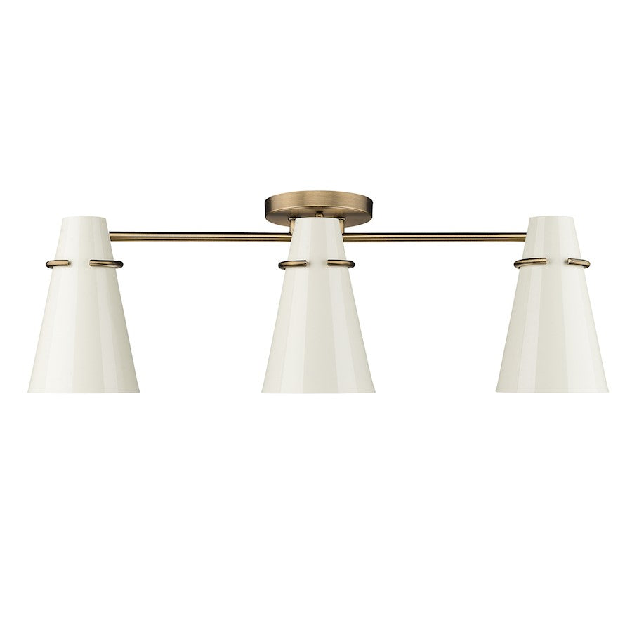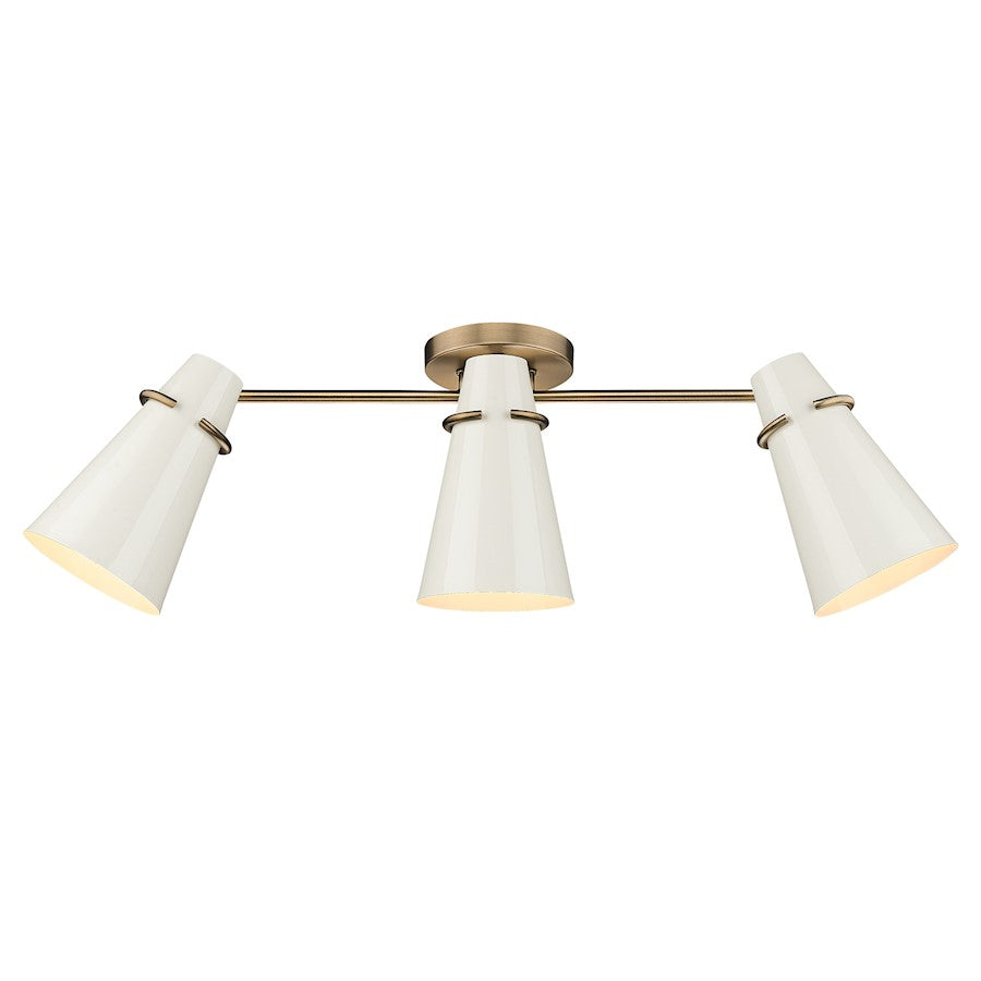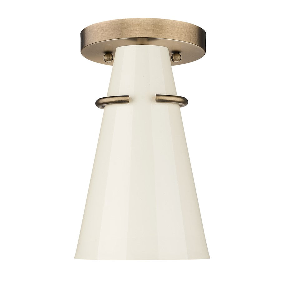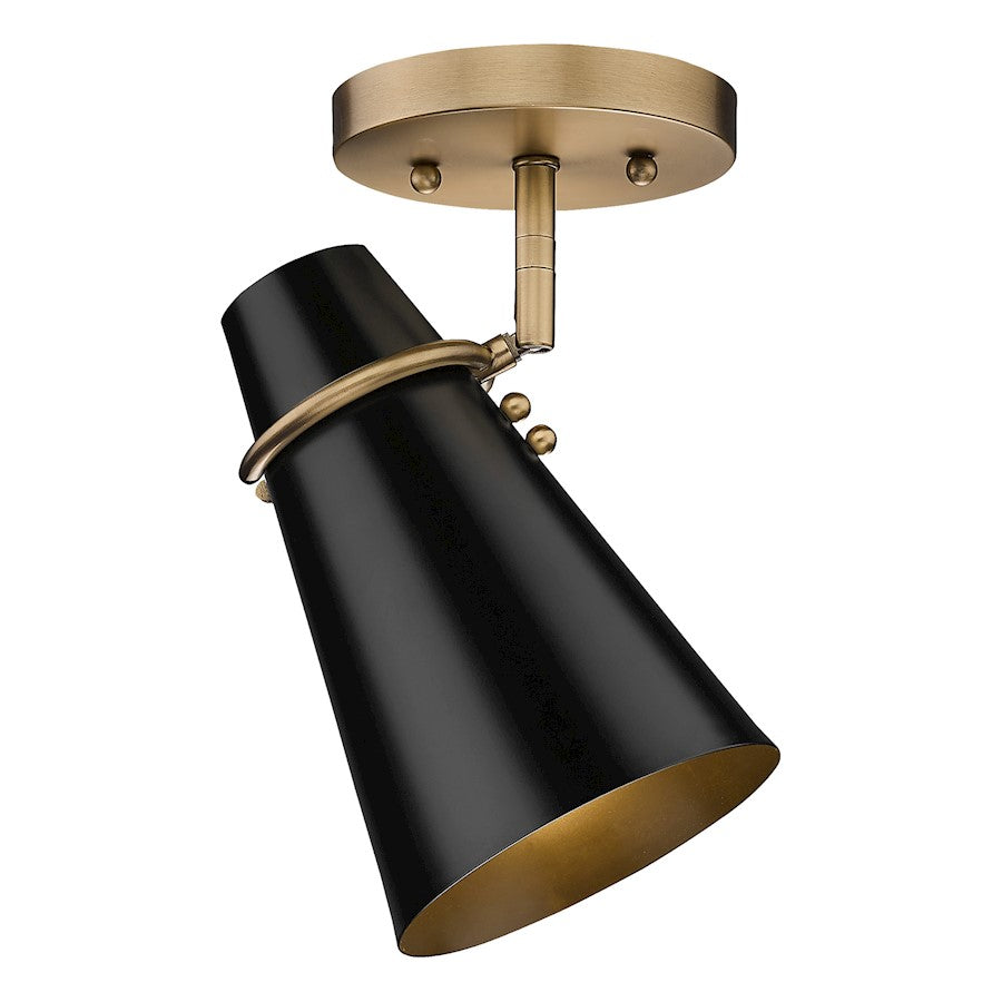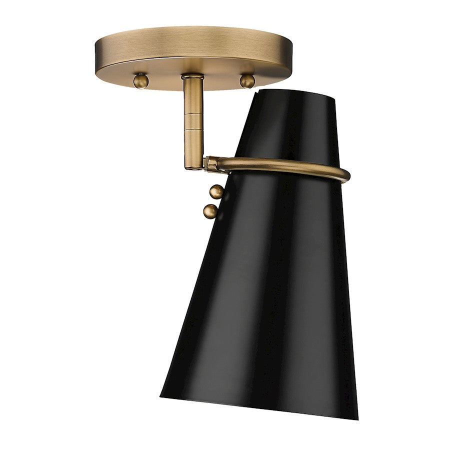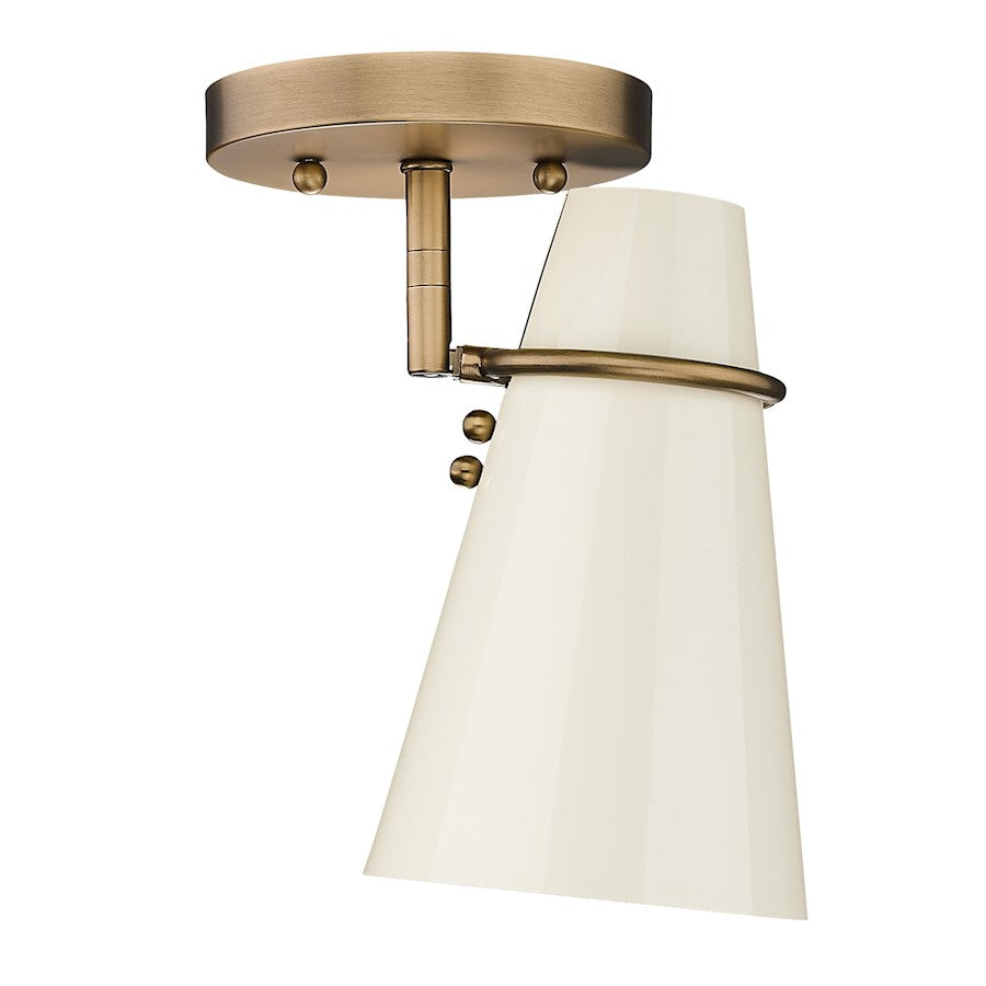 Add a touch of elegance to your home with the Mid-century modern-inspired Reeva collection. Paired with Modern Brass hardware and details, the clean look of the conical metal shades is offered in sophisticated color options. The black shade has a matte finish; while the ivory shade is glossy. The shade interiors are painted to match the exteriors. Personalize your fixtures by installing on the wall or ceilings, orienting horizontally or vertically, as well as pivoting the shades for directional lighting. Install these damp-rated fixtures in any room.