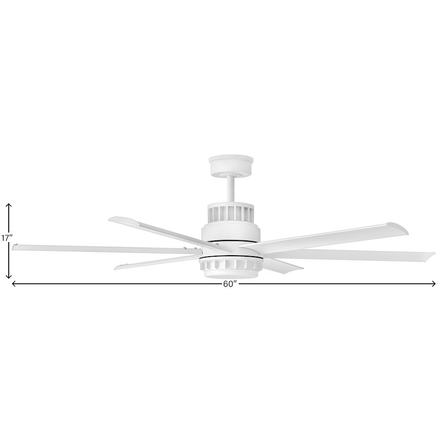 - Fan Control included, HIRO Control - 6 Speed Reversing | For more information on how to control your ceiling fan via the Hinkley Home Automation App, click here. | Suitable for use in wet (outdoor direct rain) locations as defined by NEC and CEC. Meets United States UL Underwriters Laboratories & CSA Canadian Standards Association Product Safety Standards | WiFi compatible with included fan control | LED components carry a 5-year limited warranty | This item includes a 6" down rod. Other various lengths of down rods are available and sold separately to customize the installation height. | This item may be hung on a sloped ceiling | Merging the best of traditional and modern elements with a sophisticated and streamlined look | Powered by a highly efficient and quiet DC motor | Blades, controls, switches, capacitors and hardware carry a 1-year warranty | This product uses recyclable or limited packaging materials to help reduce waste. | Motor carries a lifetime warranty | Fans should be installed at a minimum of 7 feet from the floor