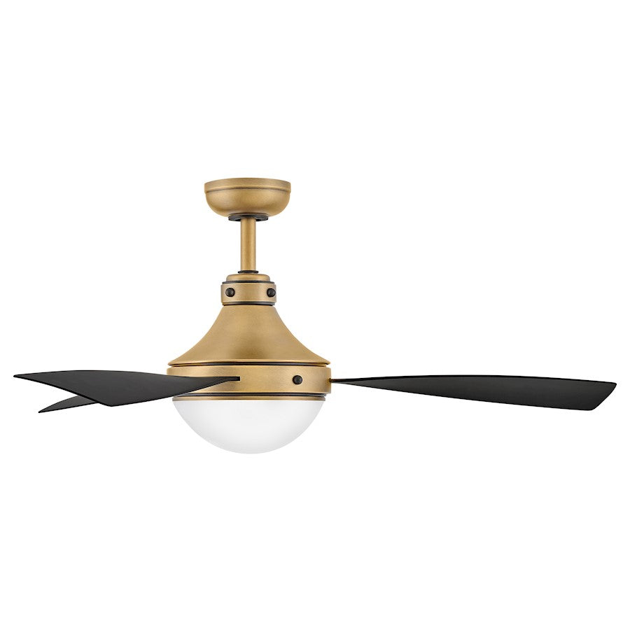 Sleek and eye-catching, Oliver’s etched opal dome conceals integrated LEDs engineered to maximize light output. Slender blades are complemented by traditional styling and classic two-tone finishes. Wet-rated design is suitable for both interior and outdoor settings. Equipped with a 6-speed DC motor that is WiFi enabled and ready to connect right out of the box. Operated by the HIRO control or WiFi compatible with the Hinkley App.