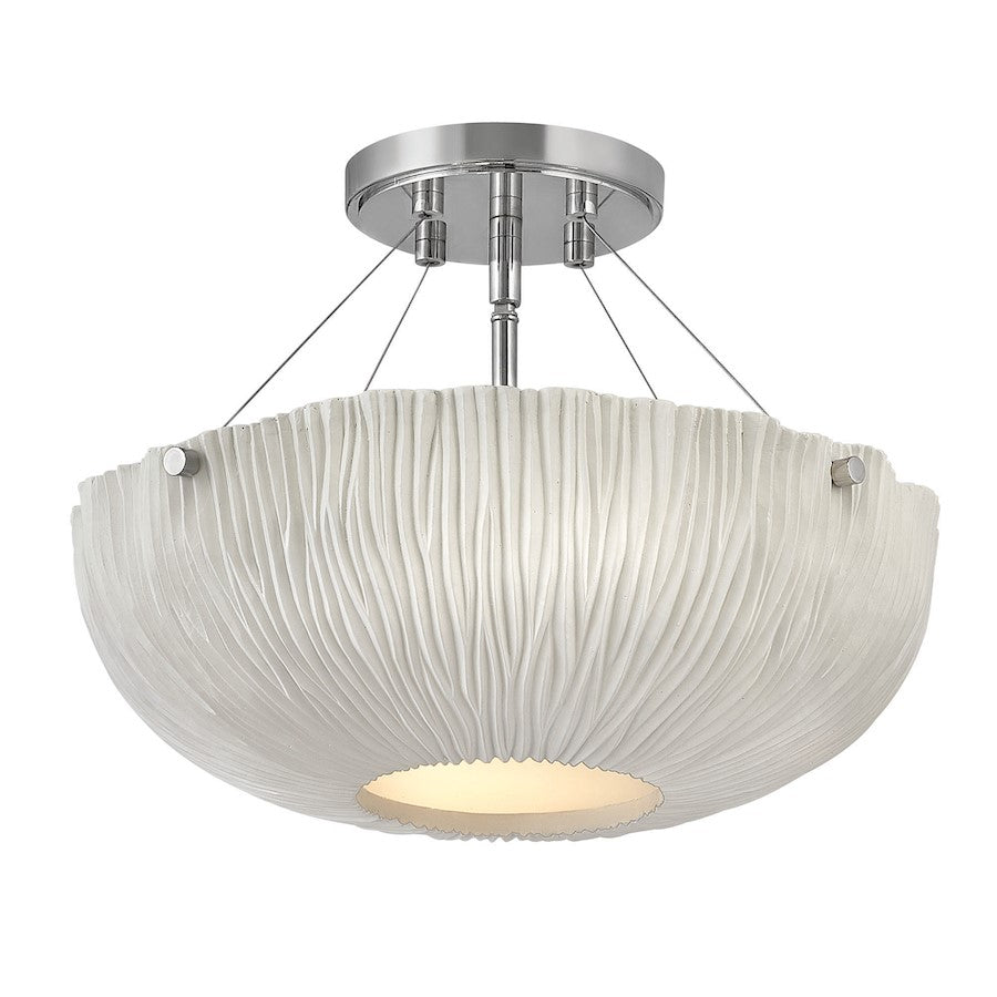 On the surface, Coral has a bold, single bowl design, striking and innovative in its simplicity. Diving a little deeper reveals the intricate details, including hand-carved patterns cast into its matte white surface and an open bottom to focus the light downward. A Polished Nickel stem and canopy complete the look. Coral is part of the Lisa McDennon Collection.