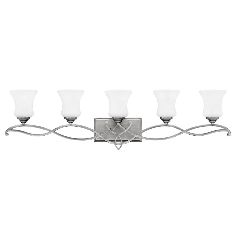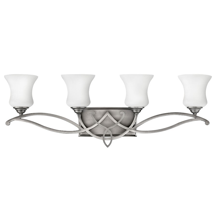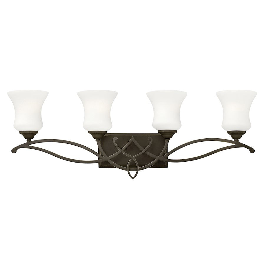 Brooke's updated traditional look features a minimalist forged scroll design that elegantly complements its etched opal glass, making this collection a perfect complement to any decor.