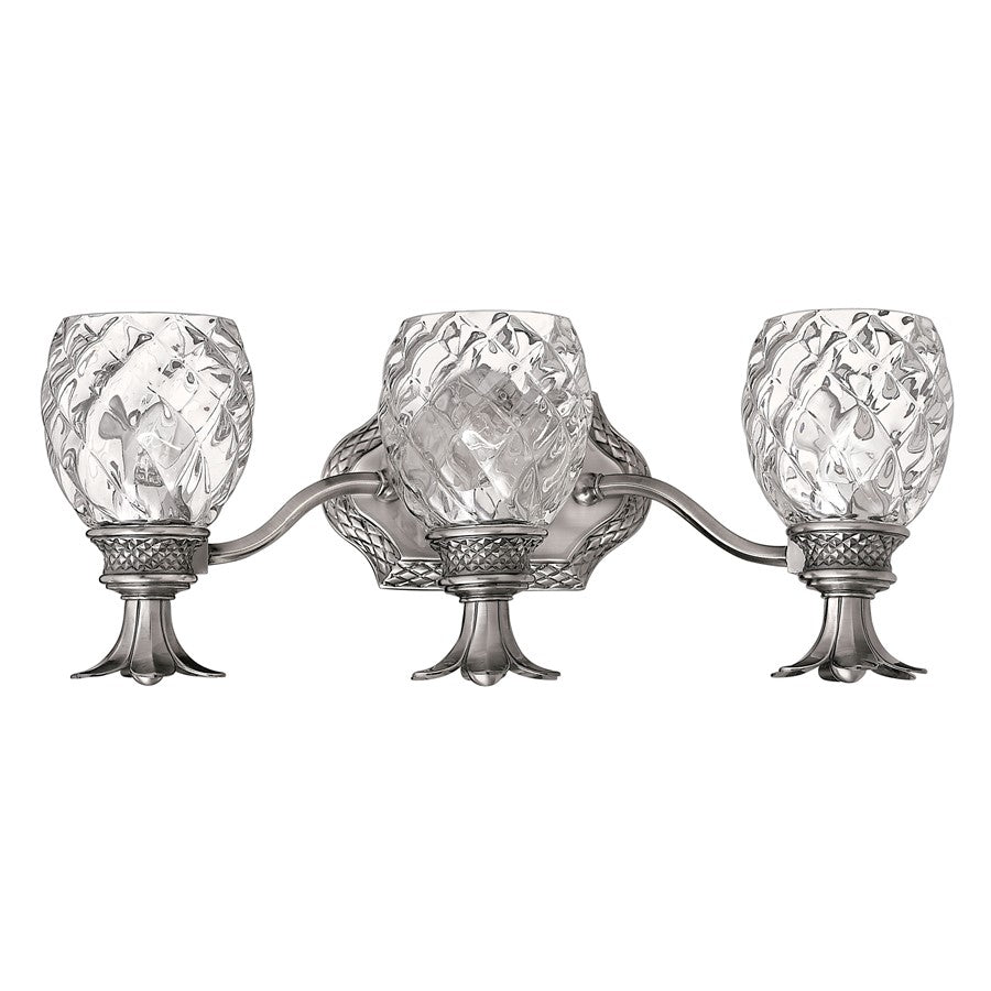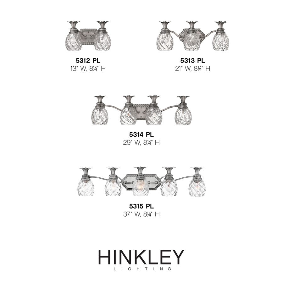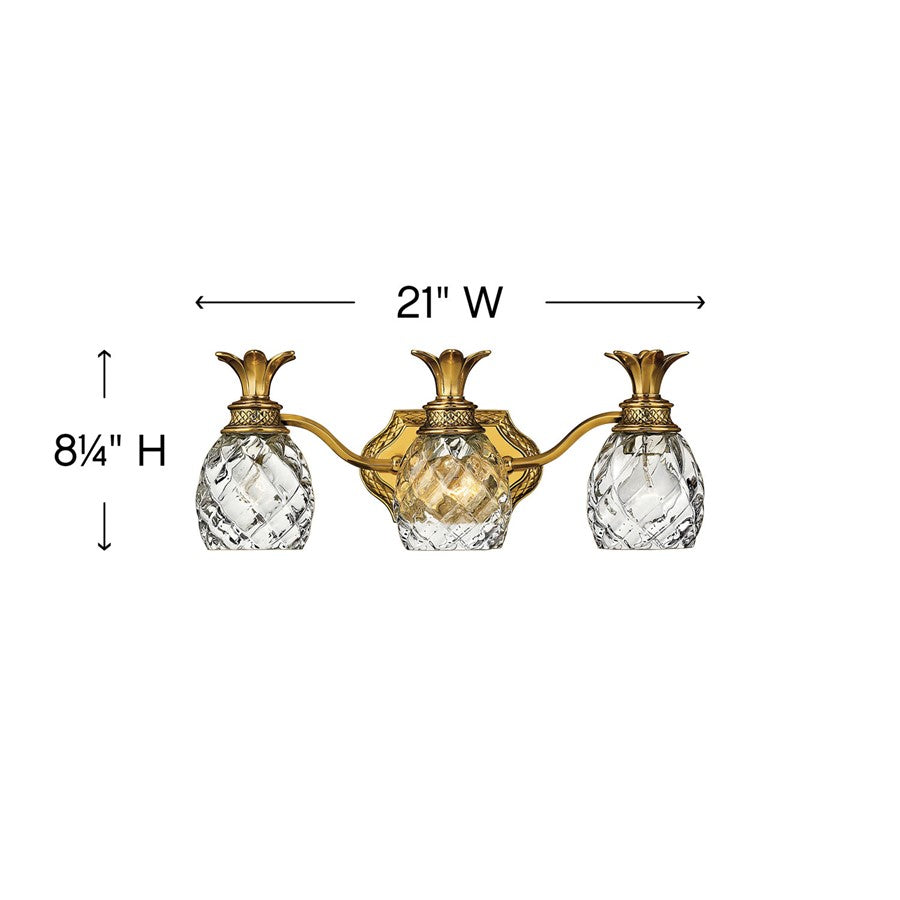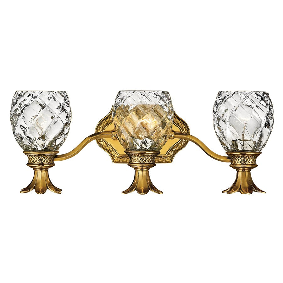 A Hinkley classic, the ornate Plantation collection features exceptional pineapple shaped, clear optic glass that makes a noble statement. The elaborate, decorative cast detailing is accentuated by the its lush finish.