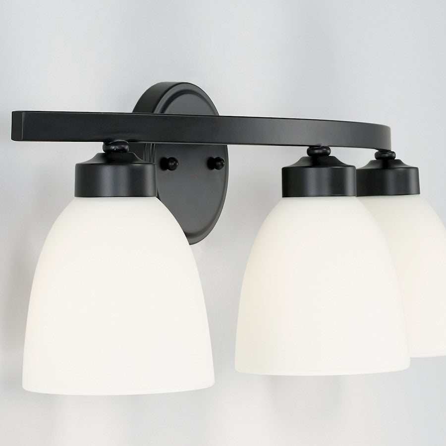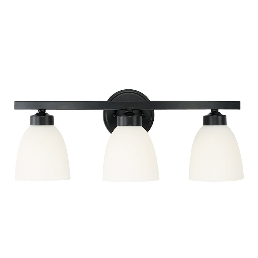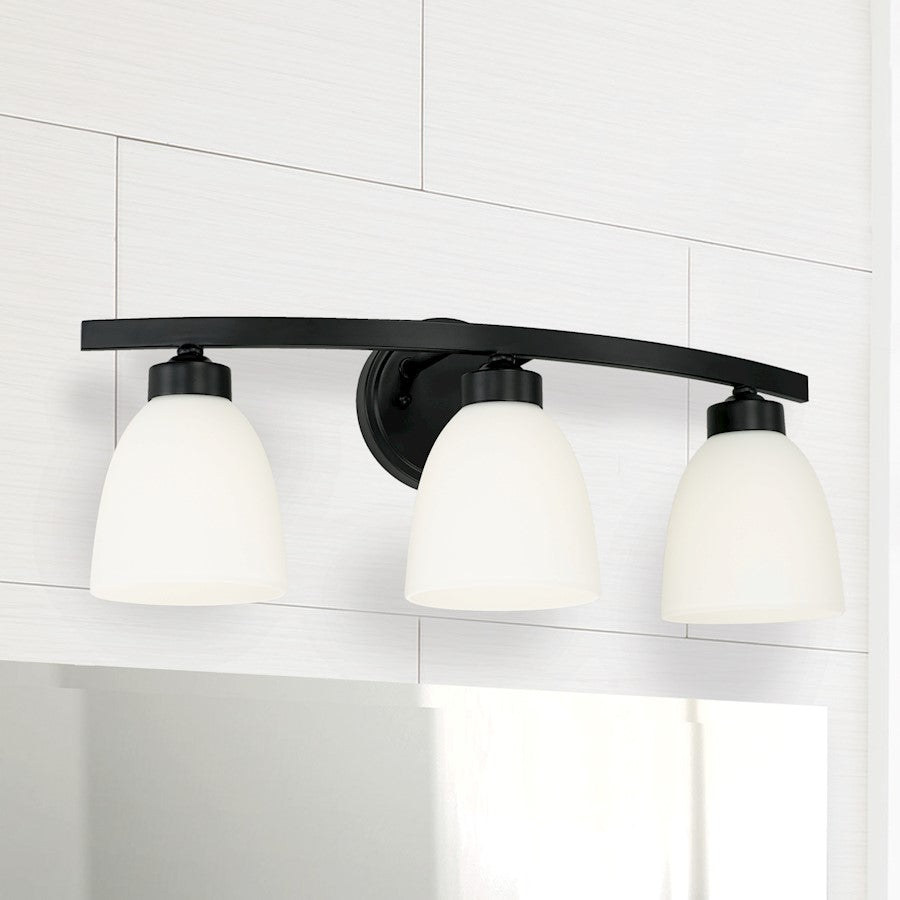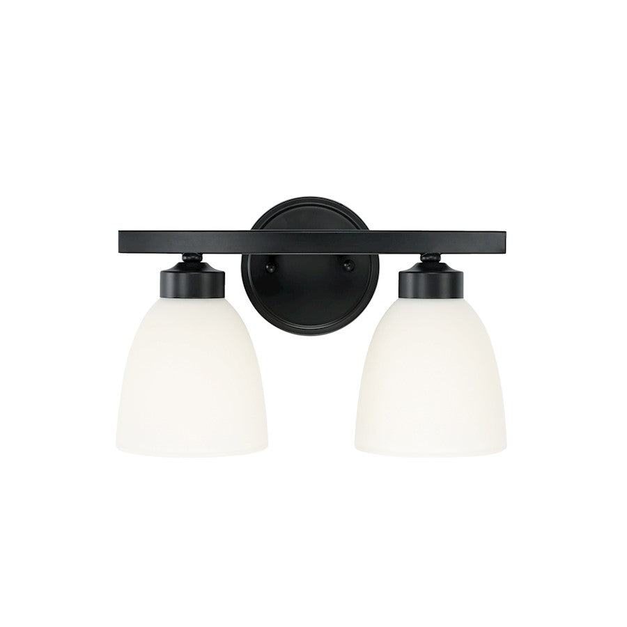 Clean lines and Sleek silhouettes create the Jameson Vanity for HomePlace. The soft white glass complements the Matte Black finish for a contemporary update to the transitional look.Height From Center of Wall Opening: 2.25"