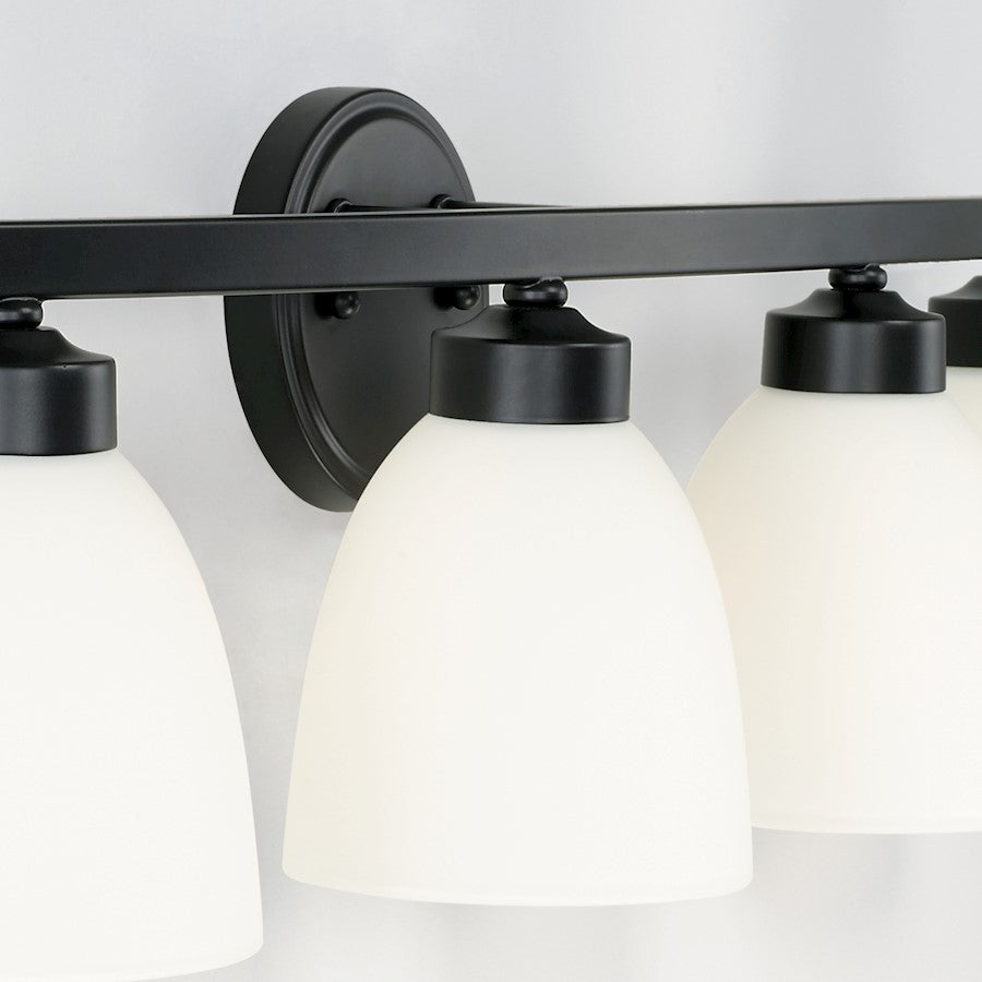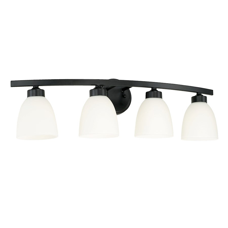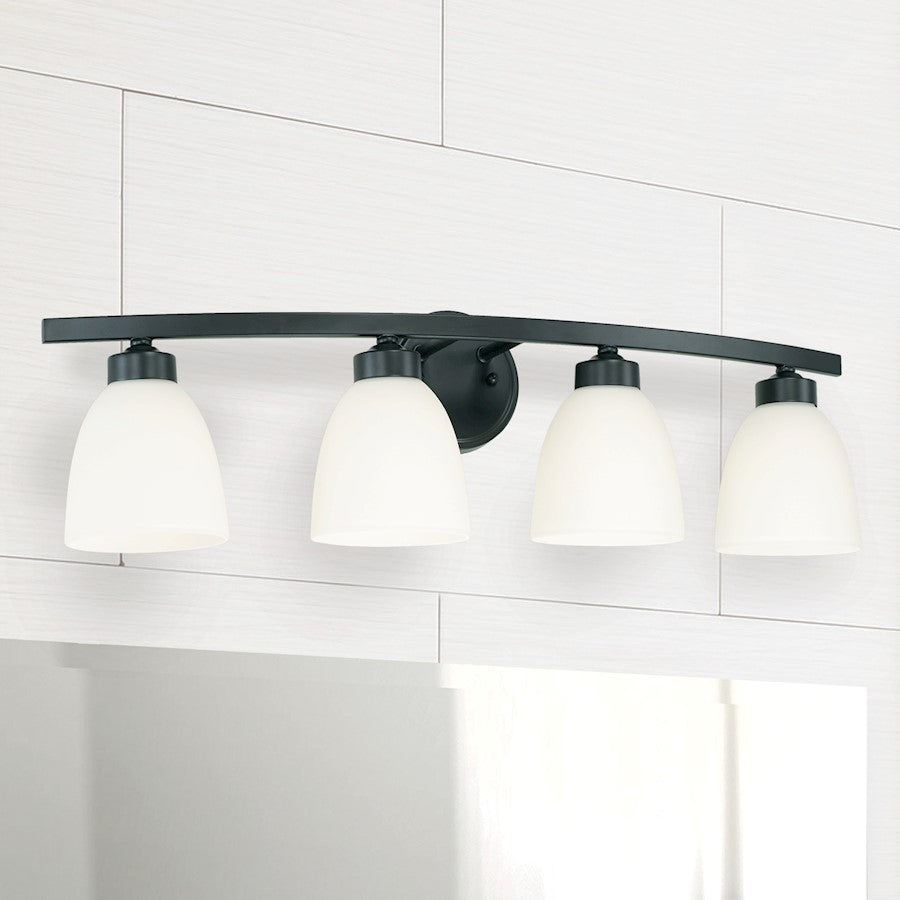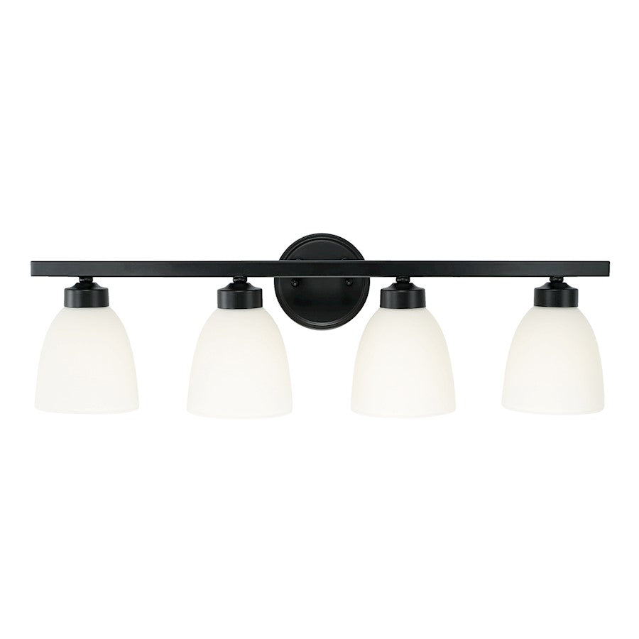 Clean lines and Sleek silhouettes create the Jameson Vanity for HomePlace. The soft white glass complements the Matte Black finish for a contemporary update to the transitional look.Height From Center of Wall Opening: 2.25"