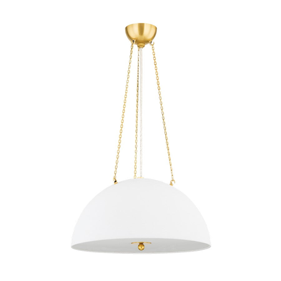 Clean and streamlined, Chiswick features a classic-chic White Plaster dome shade. The petite chain and metal finial detail feel jewelry-like and give this modern three or four light pendant an elevated, elegant vibe. Part of our Mark D. Sikes collection.