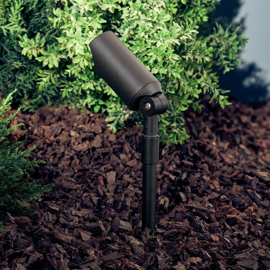The 6 inch Mini MR16 Accent Fixture in Black Brass shines upward to illuminate trees, statuary and textured surfaces for dramatic, attention-getting visuals. Customize color temperature (CCT), beam angle, wattage, and lumen output based on the LED bulb selection. The 12V low voltage drop-in fixtures are compatible with a wide selection of Kichler LED Lamps and are a great choice for any design application.