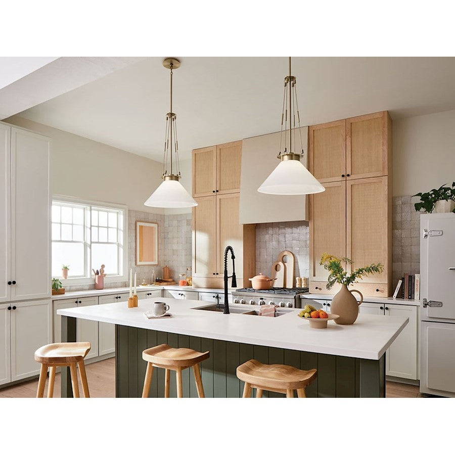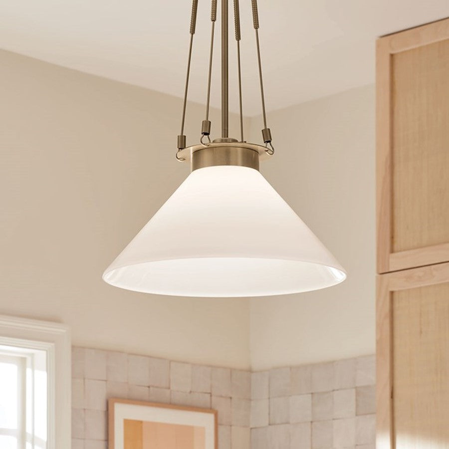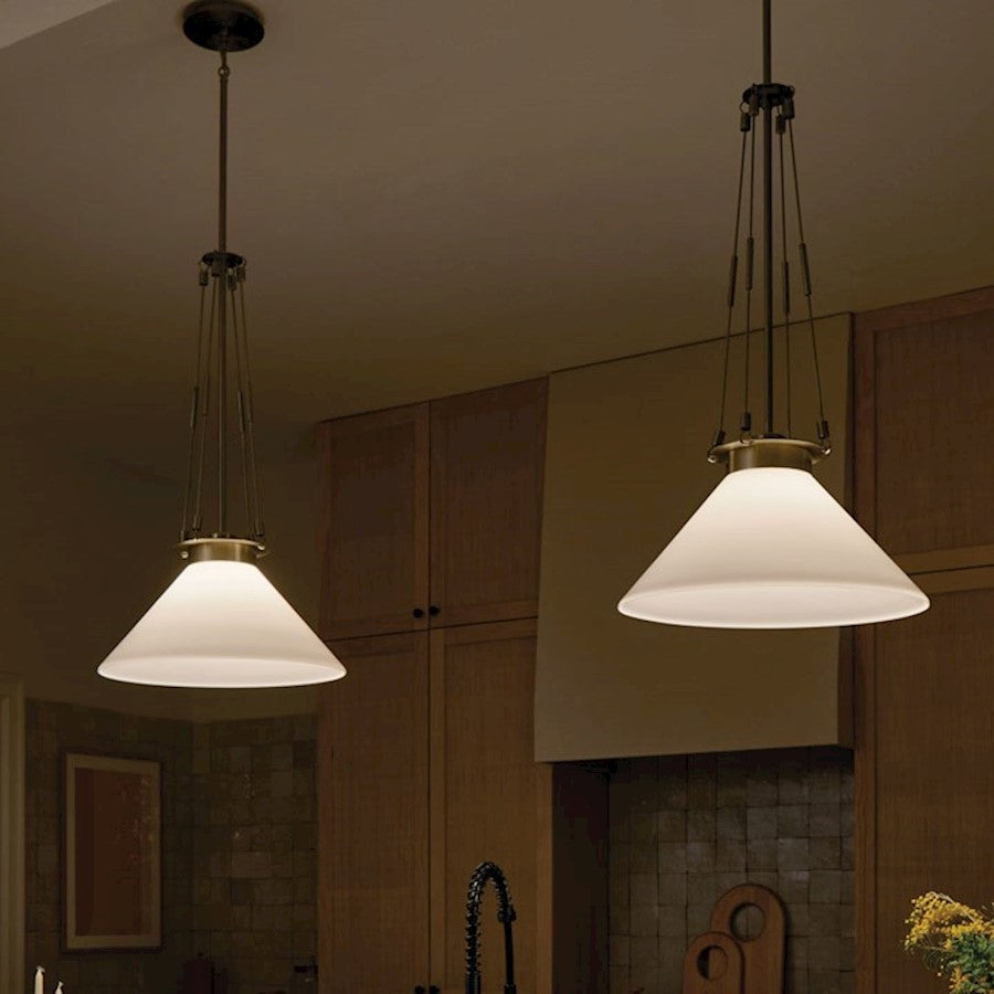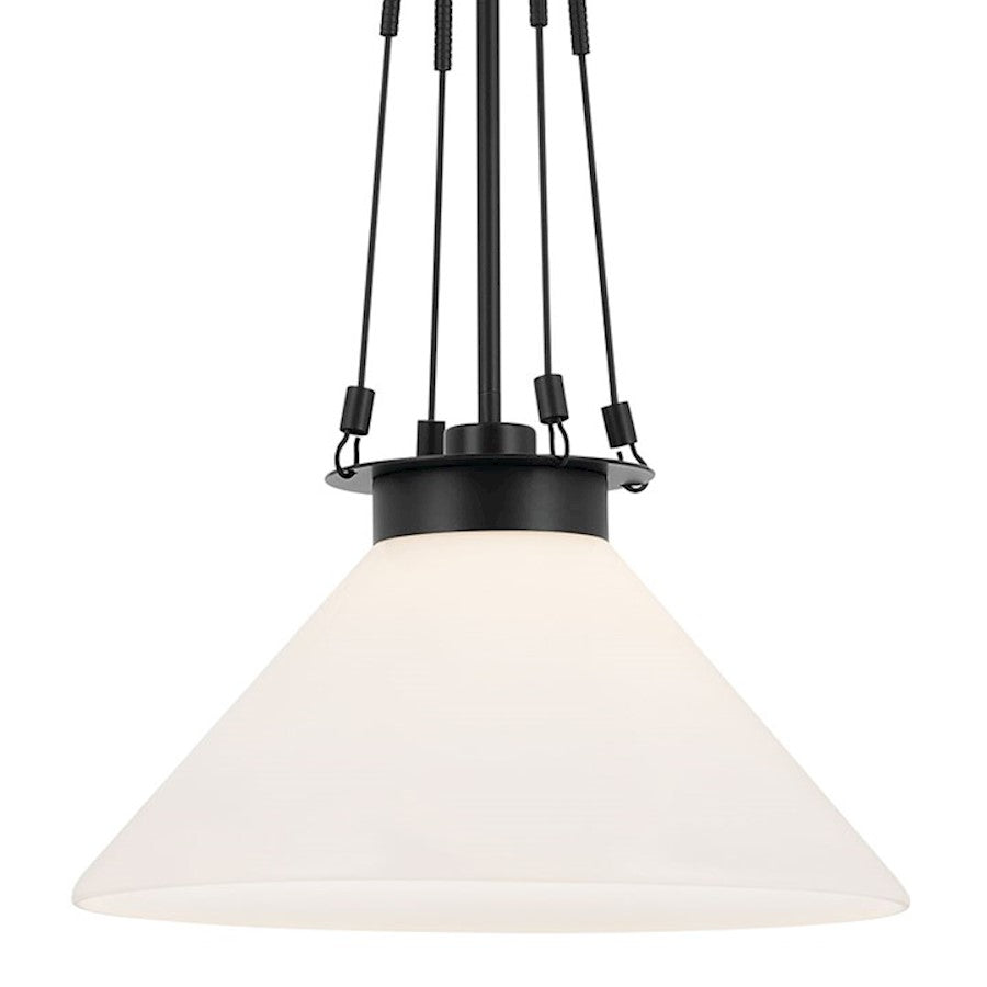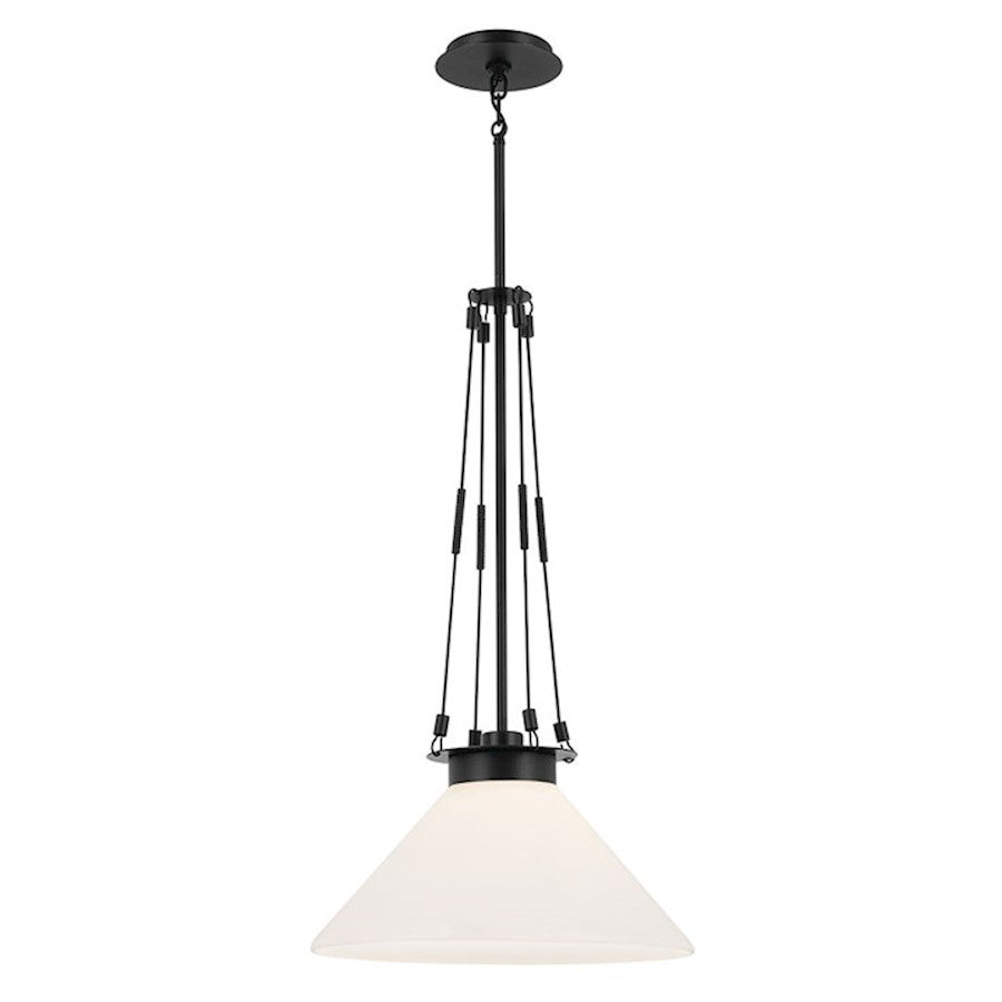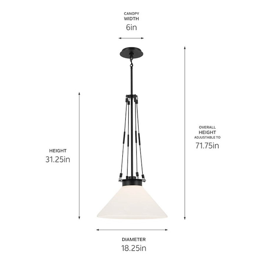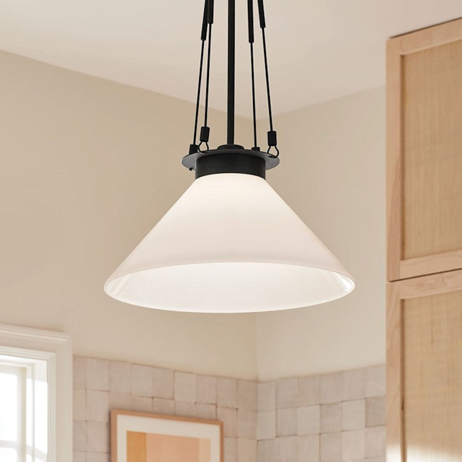 The Albers 1 light pendant's unique look easily adds interest to your space. Its refined black finish complements many design styles, and its knurled detail on the uprights make it truly unique. It comes with a cone-shaped opal glass shade.Min/Max Overall Heights: 36