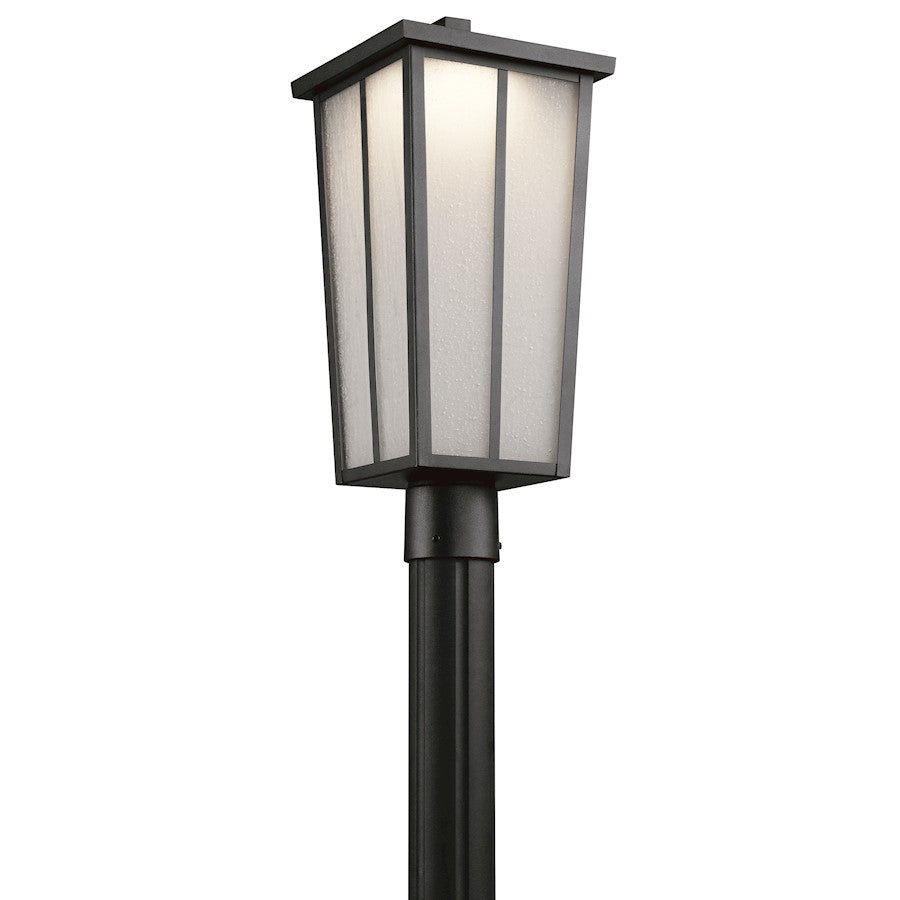 This LED post lantern from the Amber Valley outdoor collection features a simple, clean minimalist design in Textured Black with Etched Seeded glass. A perfect addition to any home's exterior.