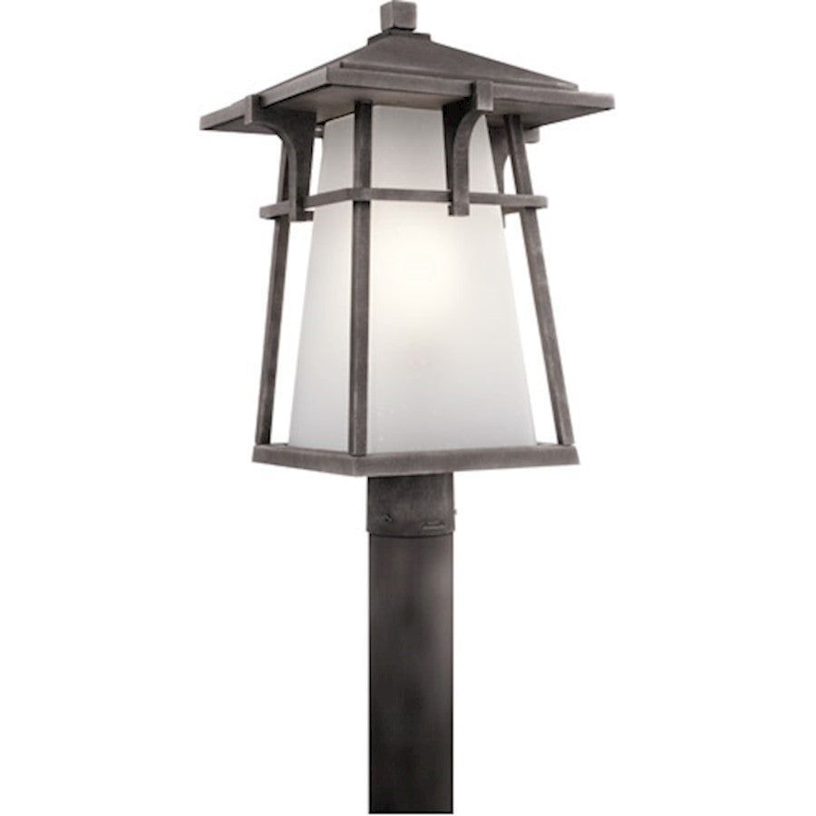 Beckett delivers to you an outdoor post lantern that combines craftsman lines with a pagoda-inspired look. This light creates a versatile look that fits in any traditional, mid-century modern or contemporary architecture homes. Beckett enhances your curb-appeal with its use of a Weathered Zinc finish and etched seeded glass.