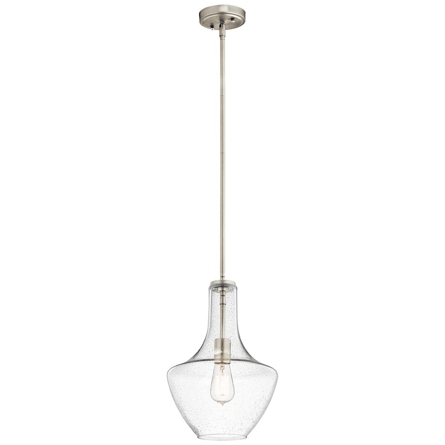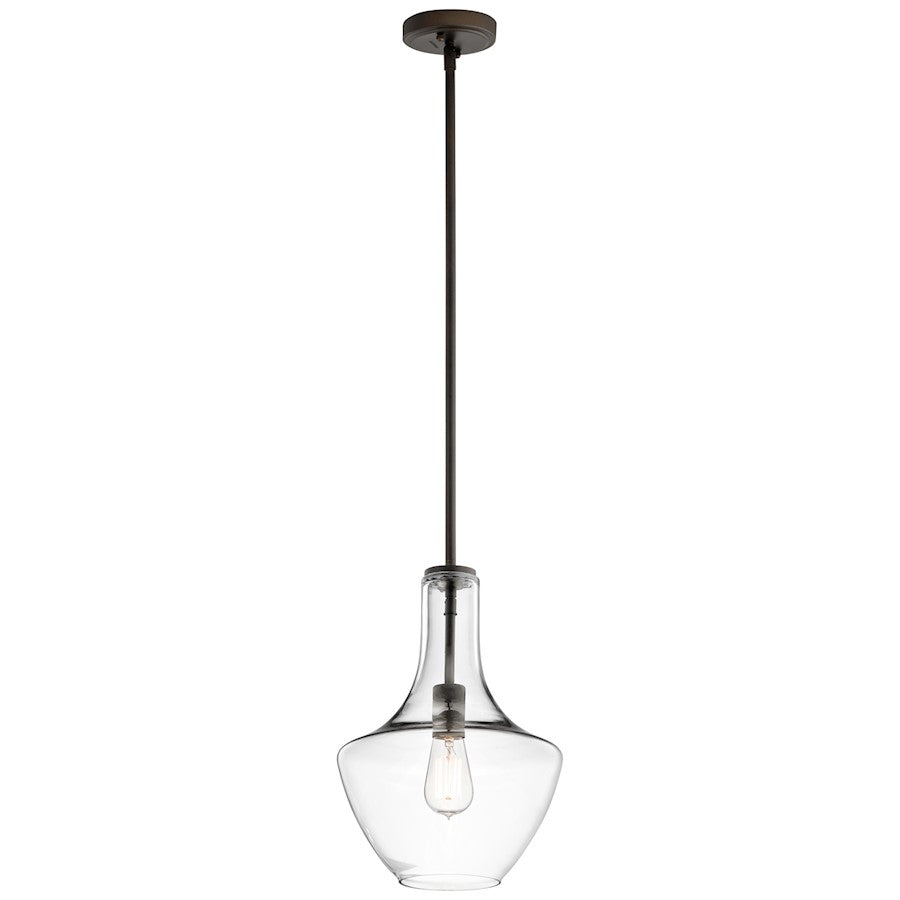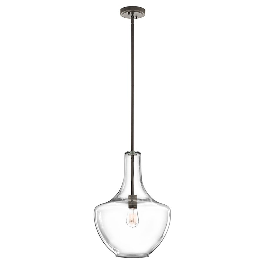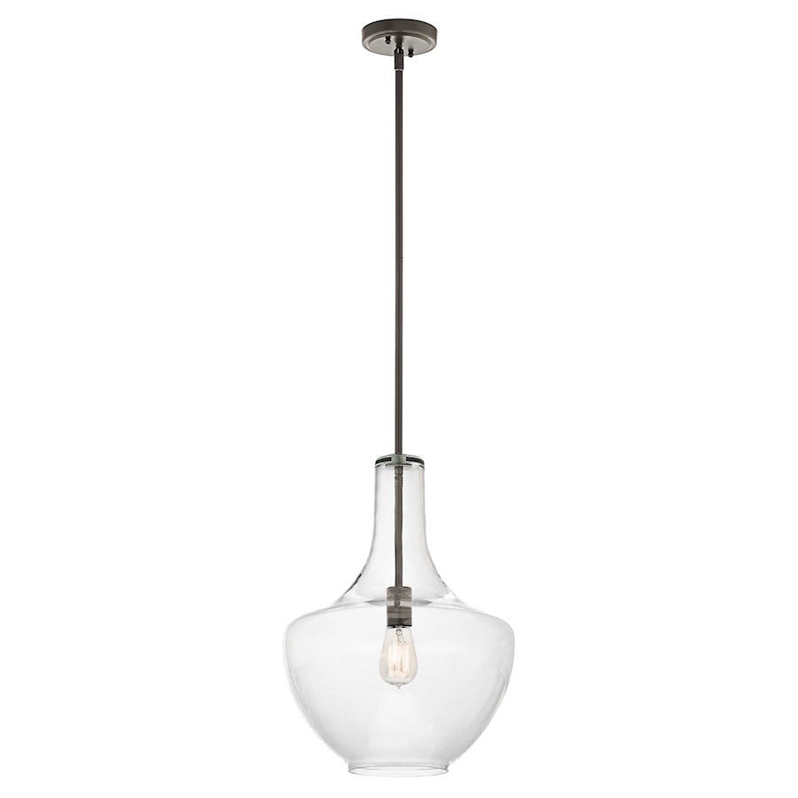 The design of this 1 light pendant from the Everly(TM) collection is inspired by a decorative blown glass container. This generous, bowed clear glass fixture features a distinctive Vintage Squirrel Cage Filament bulb that leaves an impact. For ease of use, the glass shell is removable for cleaning and replacement.