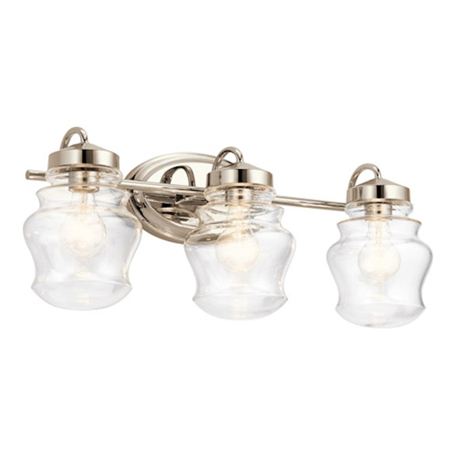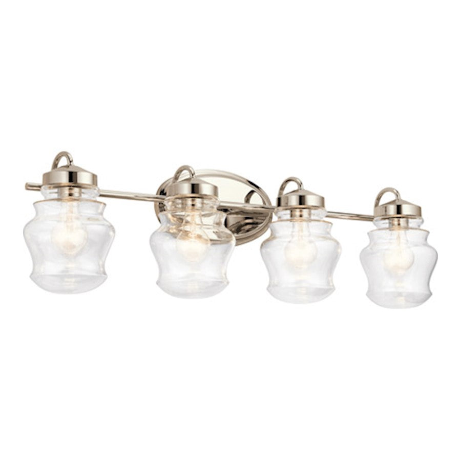 The Janiel 15in, 24in or 33.25in. 2, 3 or 4 light vanity light with shapley clear glass and Classic Bronze or Polished Nickel finish. A perfect addition in several aesthetic environments, including traditional, transitional and industrial.Height From Center of Wall Opening: 2.25 Height From Center of Wall Opening: 3