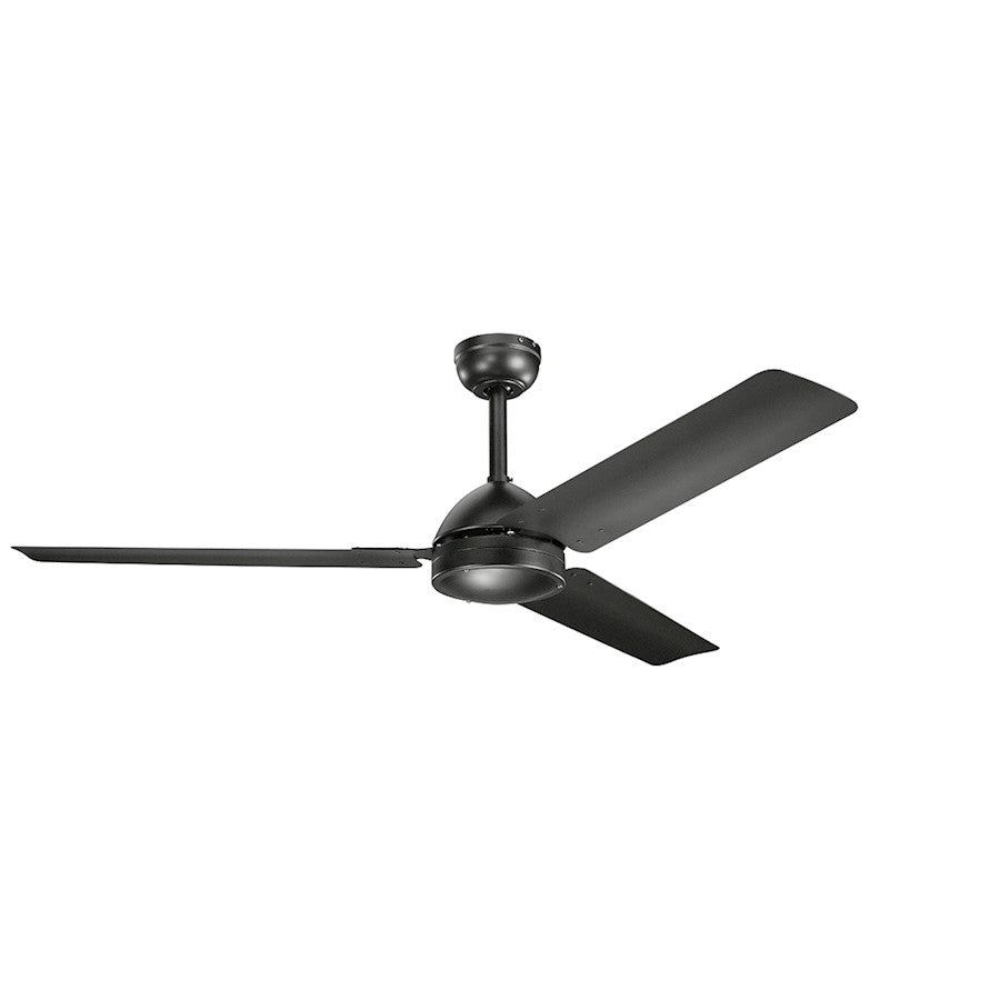56 Inch Todo Fan in SBK,in. Polished industrial styling describes this Satin Black 56 inch ceiling fan from the Todo(TM) collection. Three blades push more than 10,600 CFMs of air when used on high speed, creating bountiful air movement.