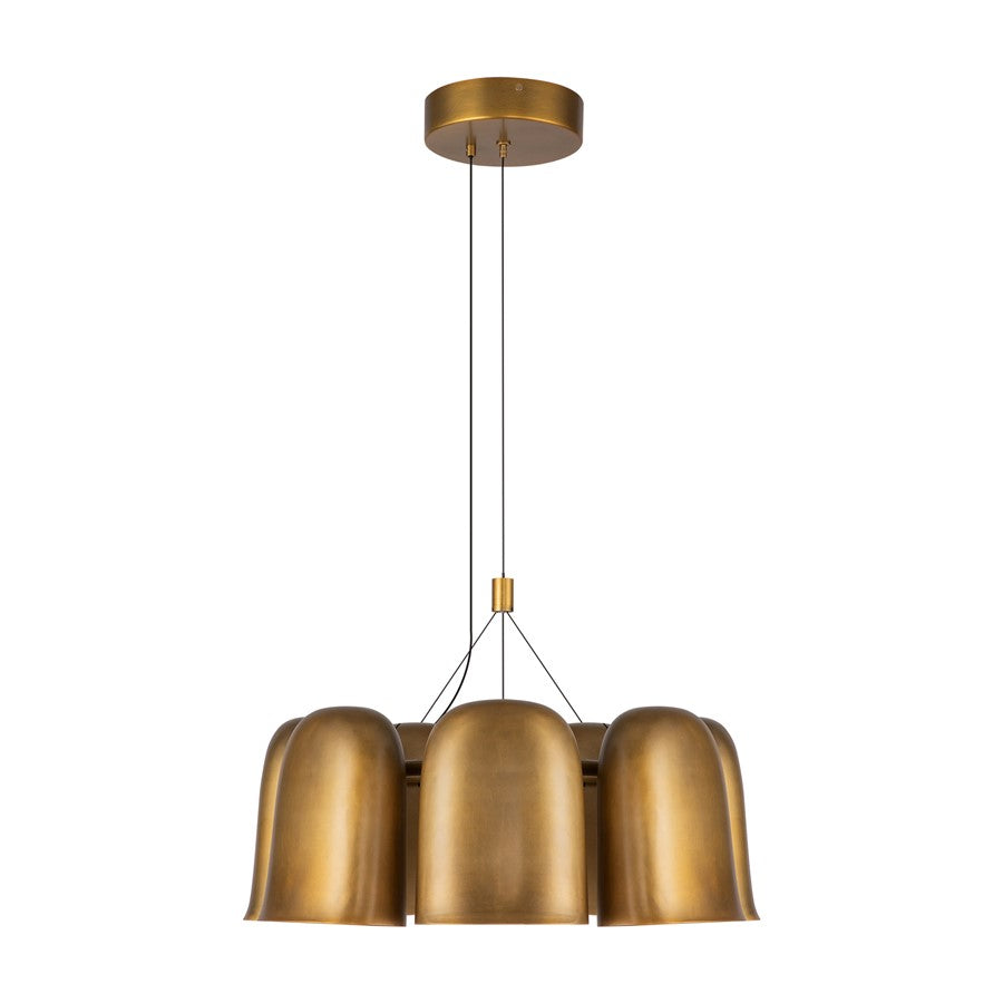 The Bell lighting collection by Branch Creative showcases distinctive bell-shaped shades. The design provides adjustable illumination, all elegantly arranged around a sleek central ring. With its modern minimal design, this fixture exudes warmth while maintaining a clean, contemporary aesthetic.
