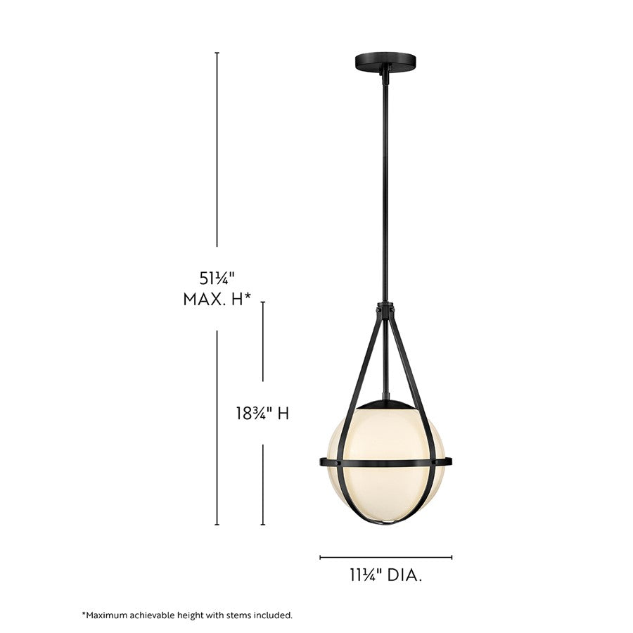 A retro, modern stunner, Colby’s cased opal glass globe, accentuated by a cage-style frame, creates unexpected glamour in any space.