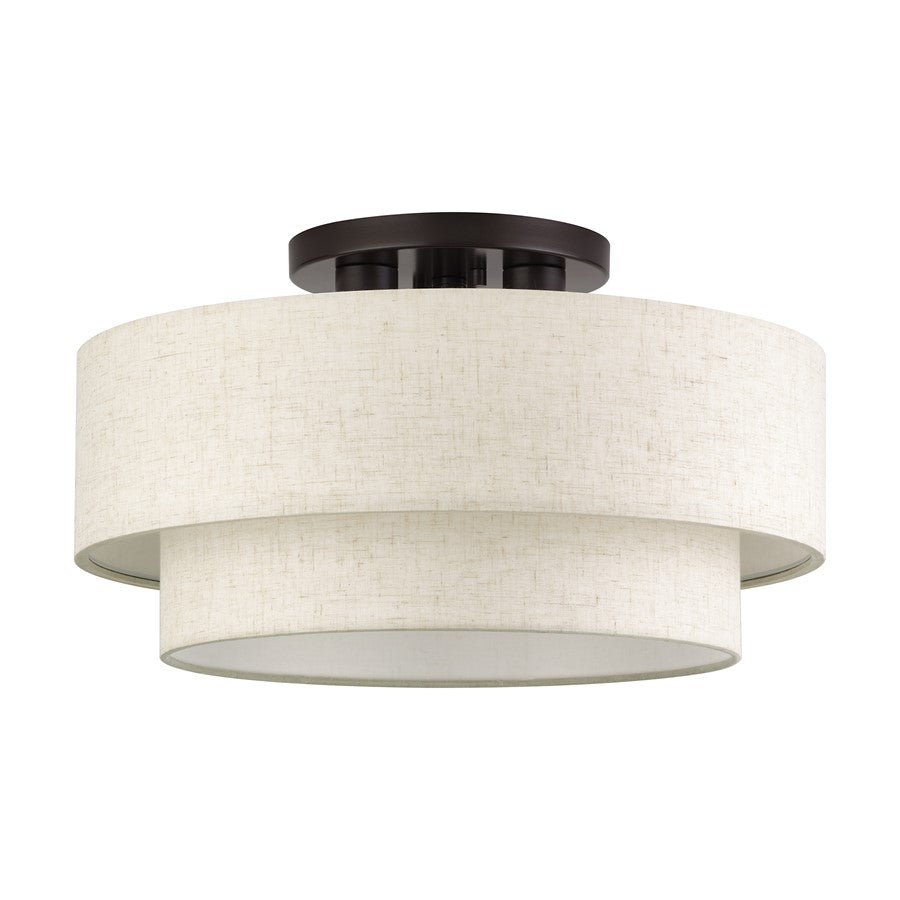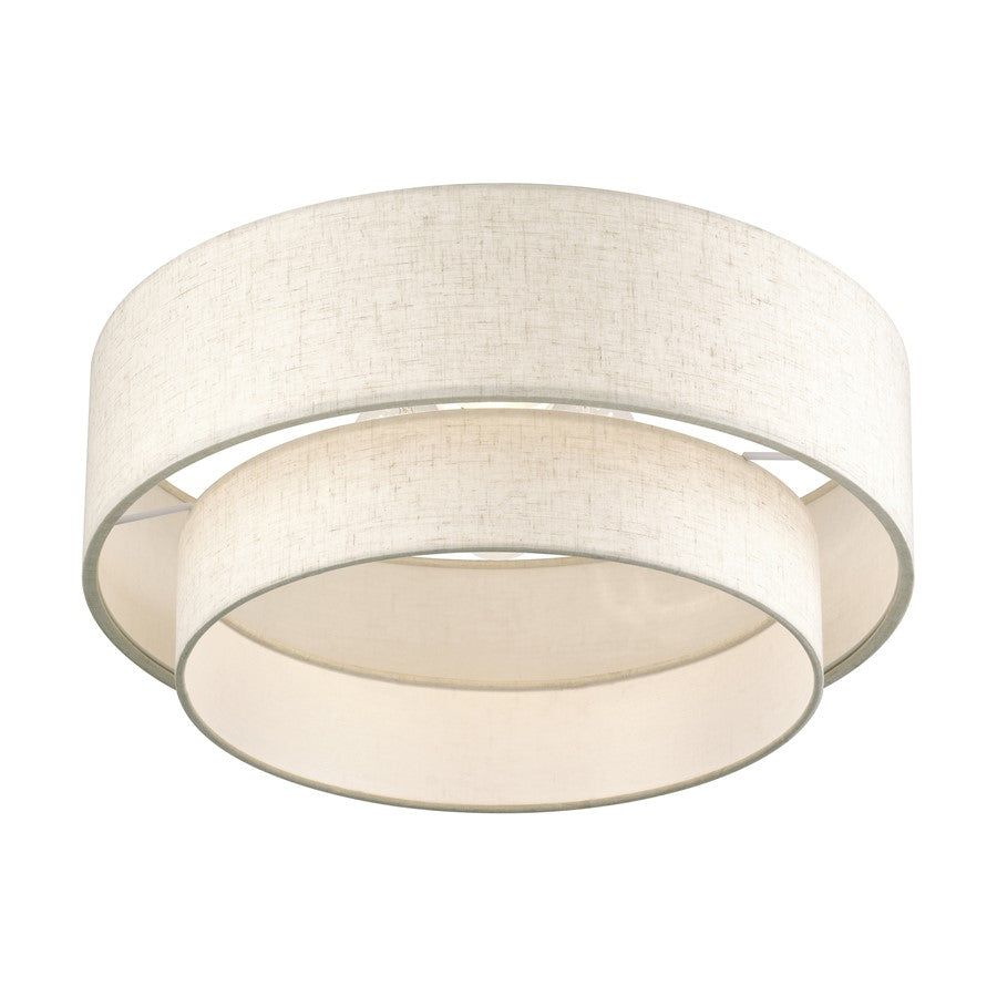 - Shade Finish: Hand Crafted Oatmeal Color Fabric Shade with White Color Inside