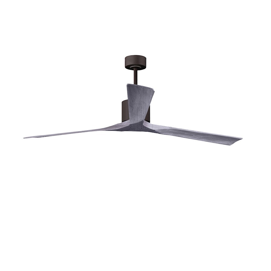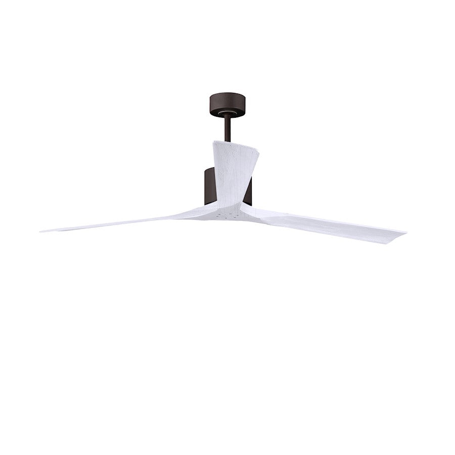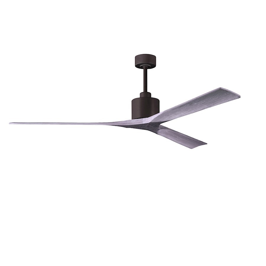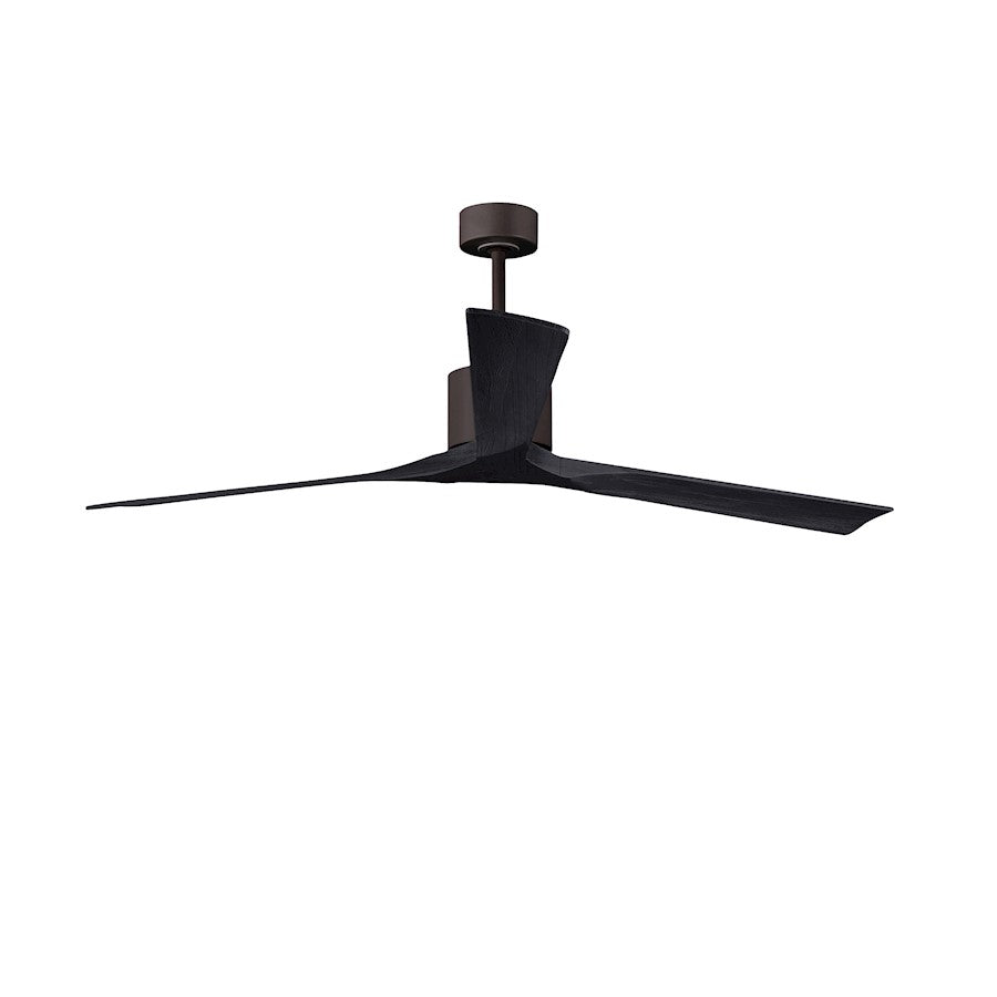72" minimal damp location ceiling fan designed by Chicago architect Stephen Katz. 6 speed DC motor operated by hand-held remote control and wireless wall control. Solid wood blades in Matte Black or Barnwood tone or Walnut Tone or Matte White.