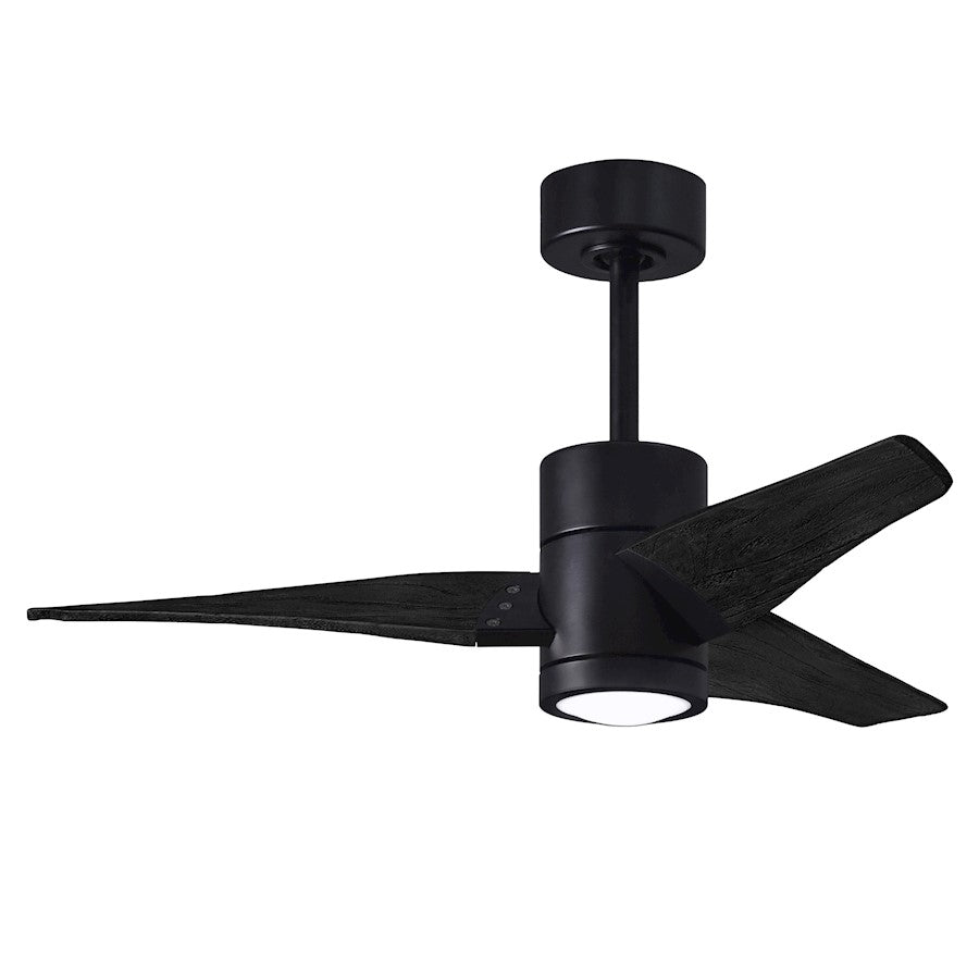 The Super Janet's remarkable design and solid construction in cast aluminum and heavy stamped steel make it the heroine in any commercial or residential space. Moving air with barely a whisper, its efficient DC motor turns solid wood blades. An eco-conscious LED light kit with light cover completes the package.