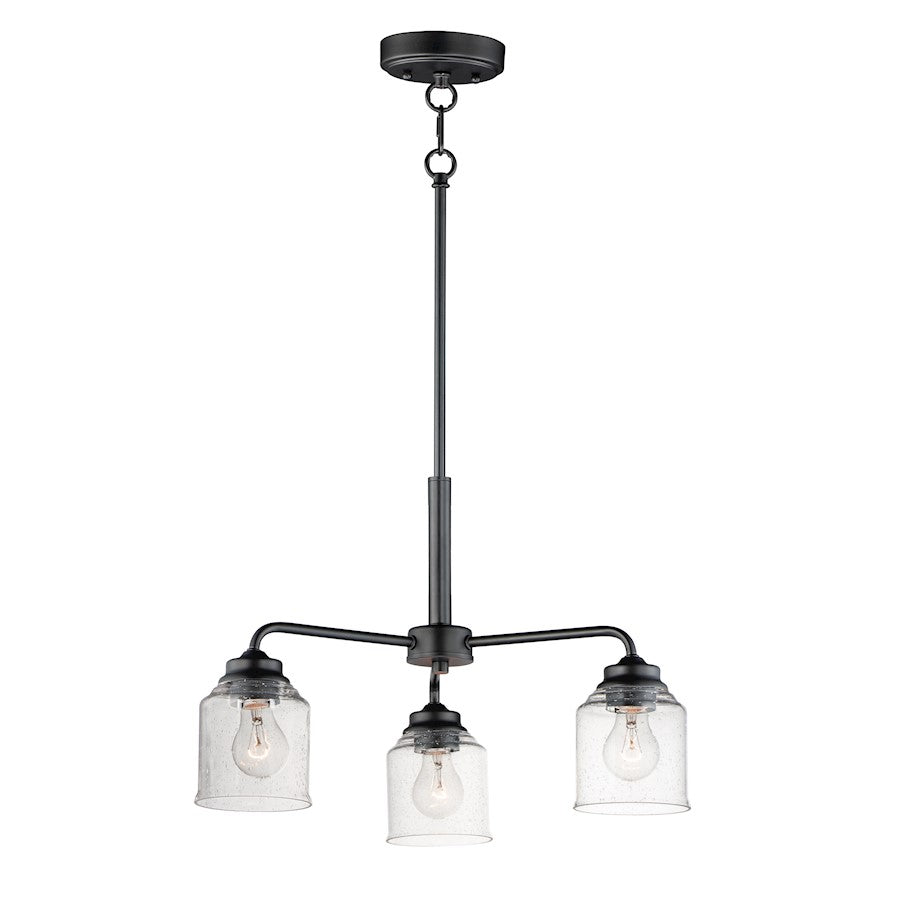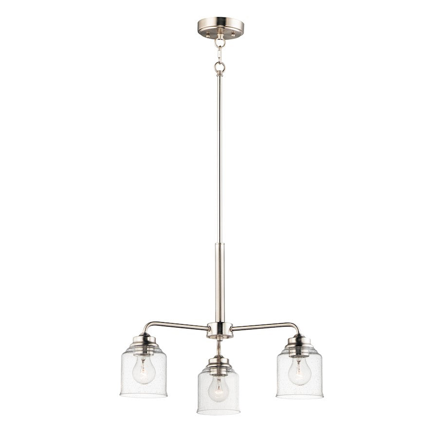 A clean and simple frame features arms that gently bend to support Clear Seedy glass. You have a choice of Black for a traditional look or Satin Nickel for more of a transitional appeal. The 3 light version is very versatile for it converts from a semi flush to a hanging chandelier.