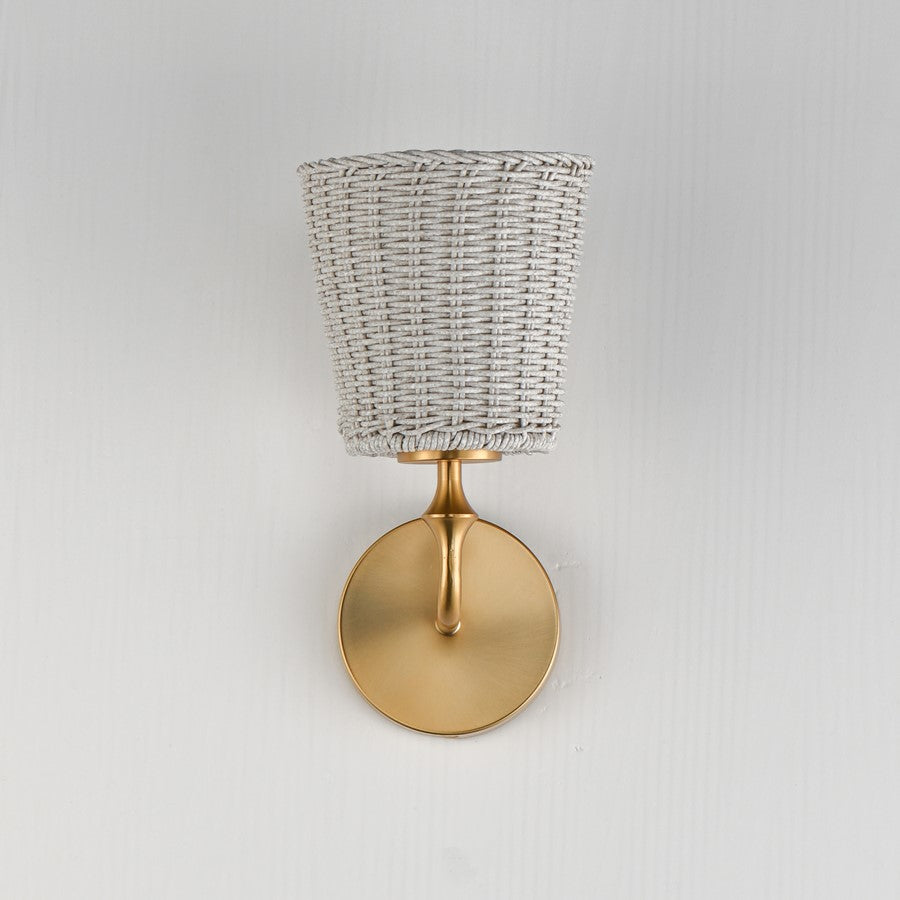 Featuring wicker shades made of synthetic rattan, this bath vanity lighting collection brings an elegant coastal flair to your space. Choose from a Natural wicker finish with a Dark Bronze frame accented by brushed golden highlights, or a Weathered White rattan with a Natural Aged Brass frame for a timelessly elegant composition.