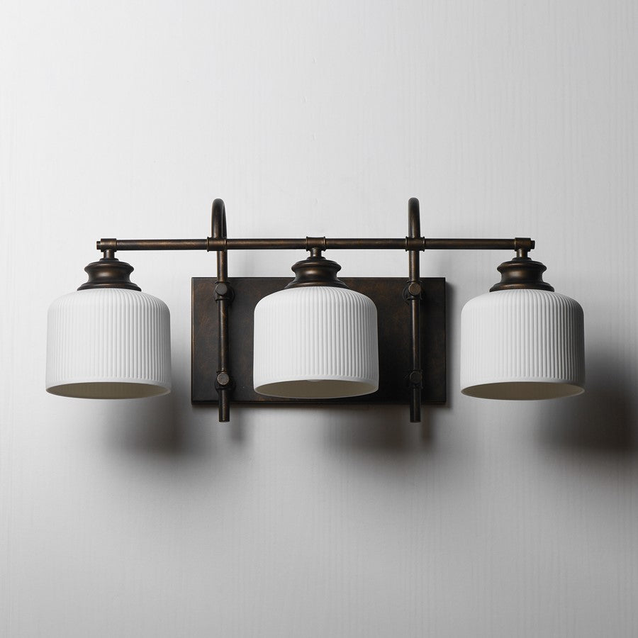 Ribbed ceramic shades are gracefully suspended on classic arching tube frames, creating a timeless yet modern design. The matte bisque-fired ceramic is translucent softly diffuses light while highlighting the ribbed raised pattern. Available in elegant finishes, choose from Natural Aged Brass, Oil Rubbed Bronze, or Polished Nickel frames to complement your space.