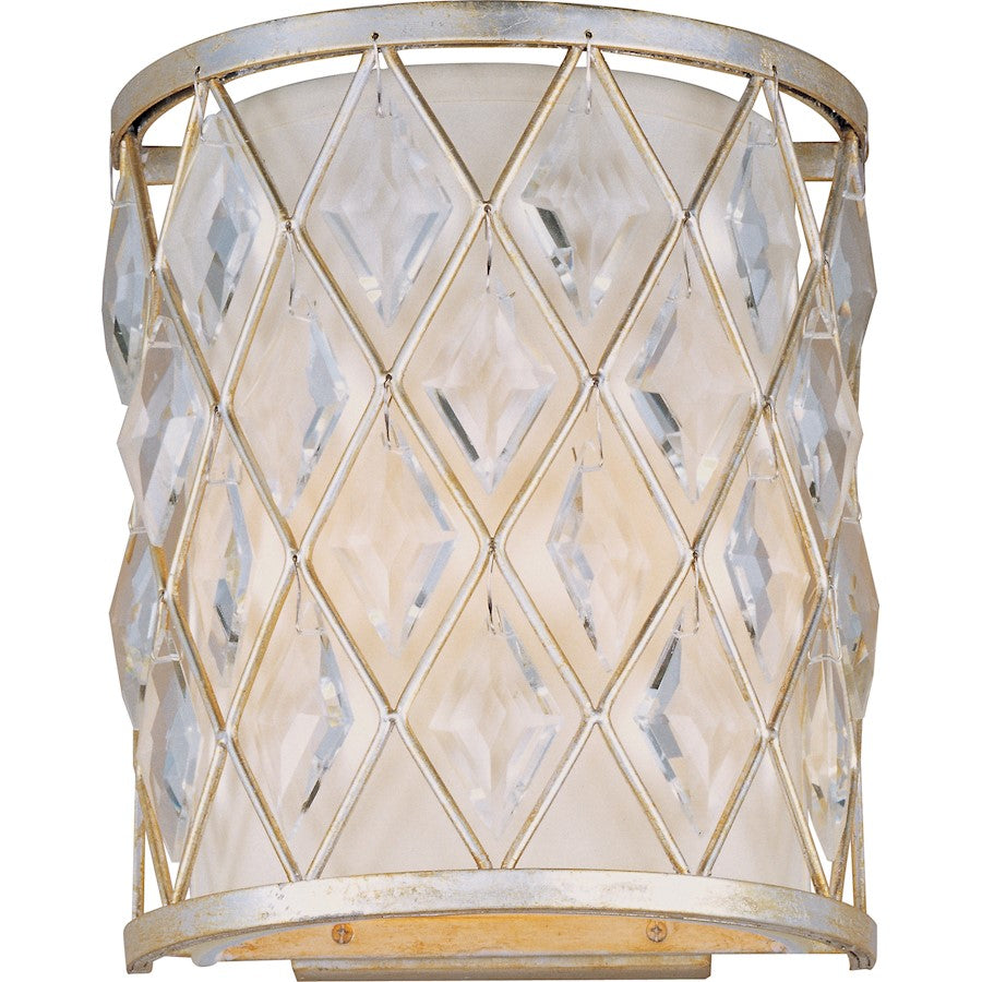 Diamond-shaped crystals gracefully fit the openings in these metal frames finished in a rustic Golden Silver finish, and creamy Off White fabric shades line each frame of the Diamond collection. The oval-shaped pendant is sure to be the focal point of any fine decor.