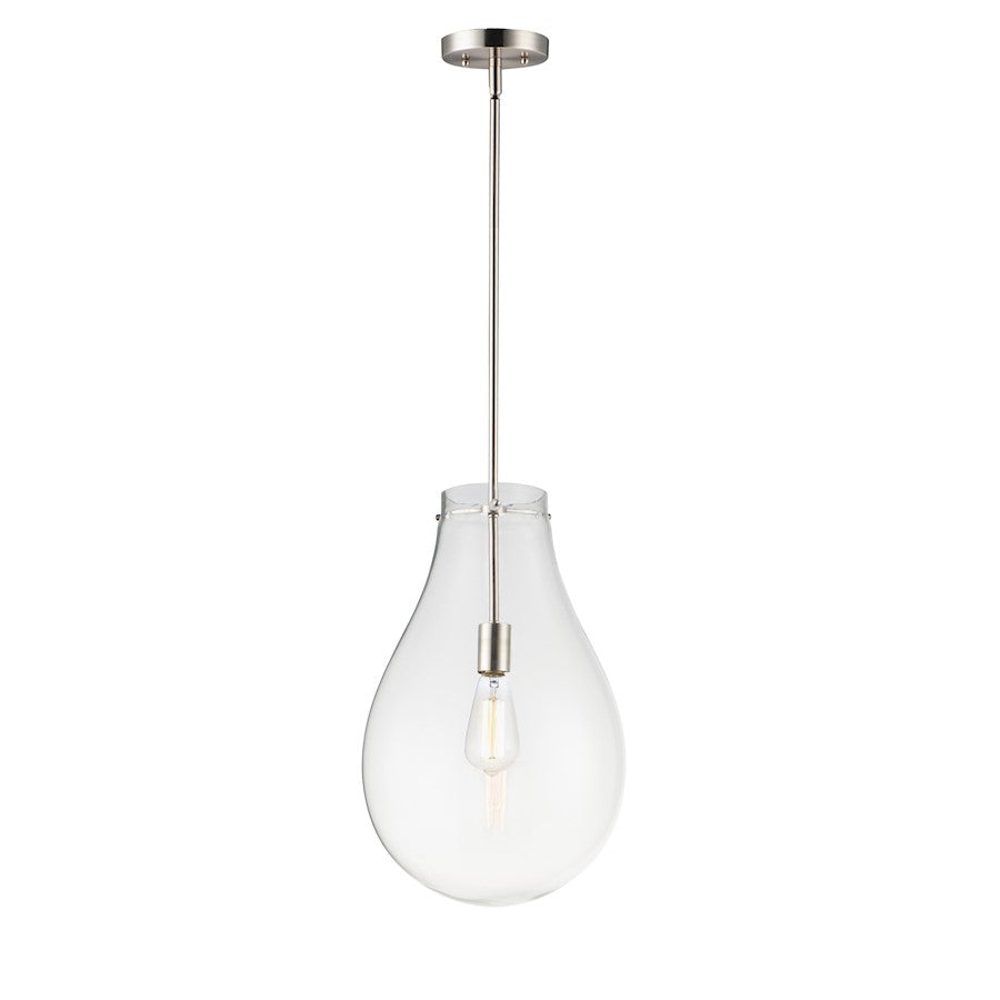 The crystal clear, large-scale glass pendants attest to the craft of hand-blown glass with their impressive scale. These hand crafted glass pendants embody simplicity and minimalism. Accented with Satin Nickel hardware, the style pairs well in a variety of settings.