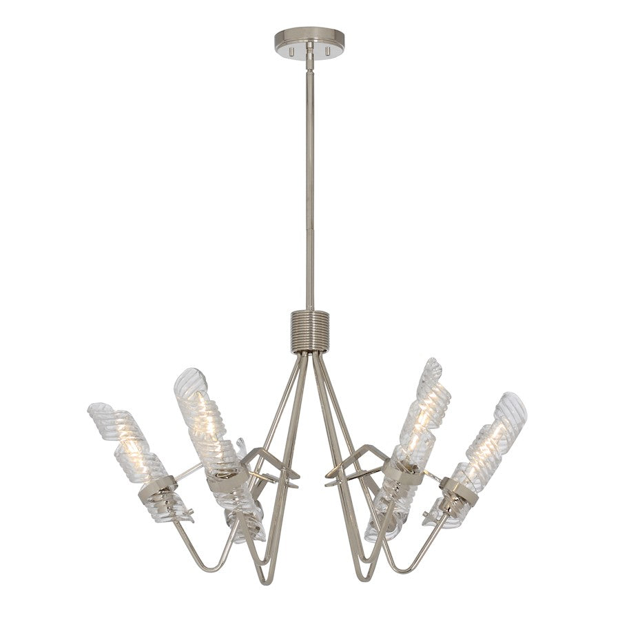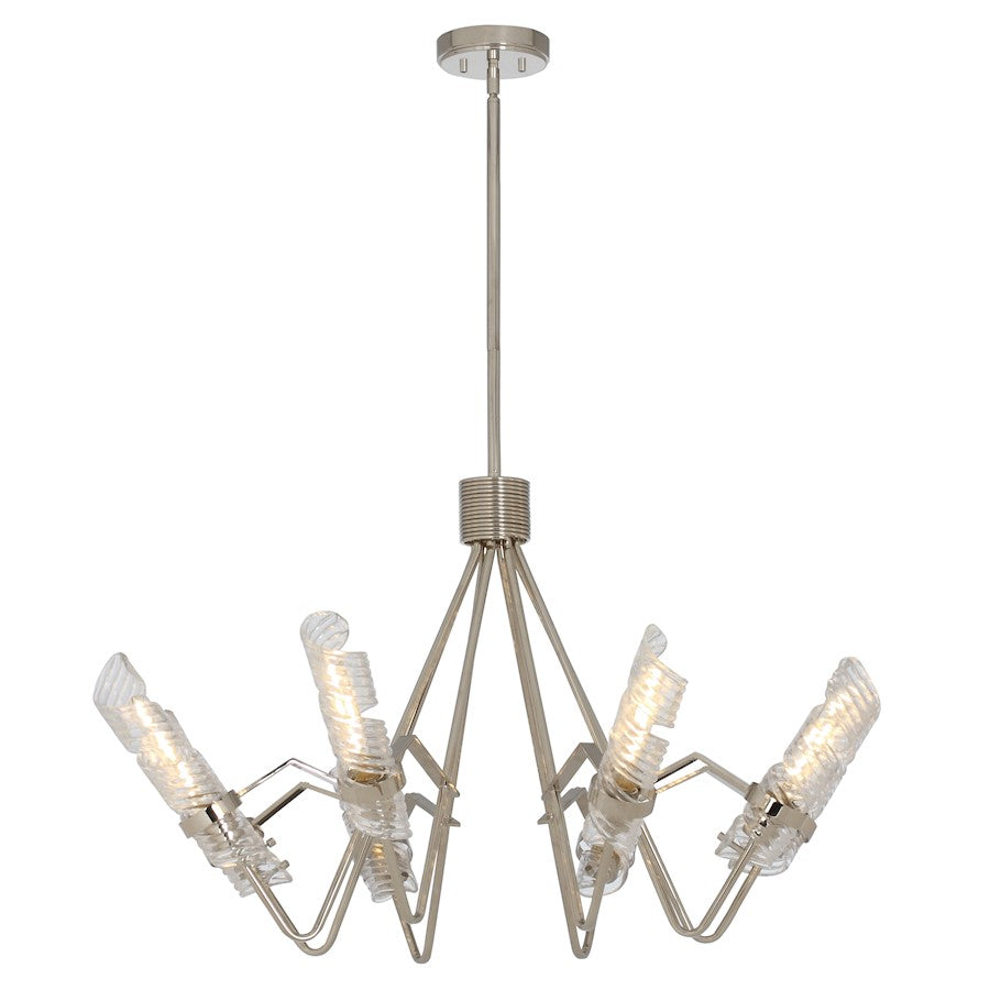 The highlight of this collection is the hand formed Clear spiral glass shades which are nested in a unique frame of Polished Nickel. Inspired by the craftsmen of Italy, these fixtures will become tomorrow's heirlooms.